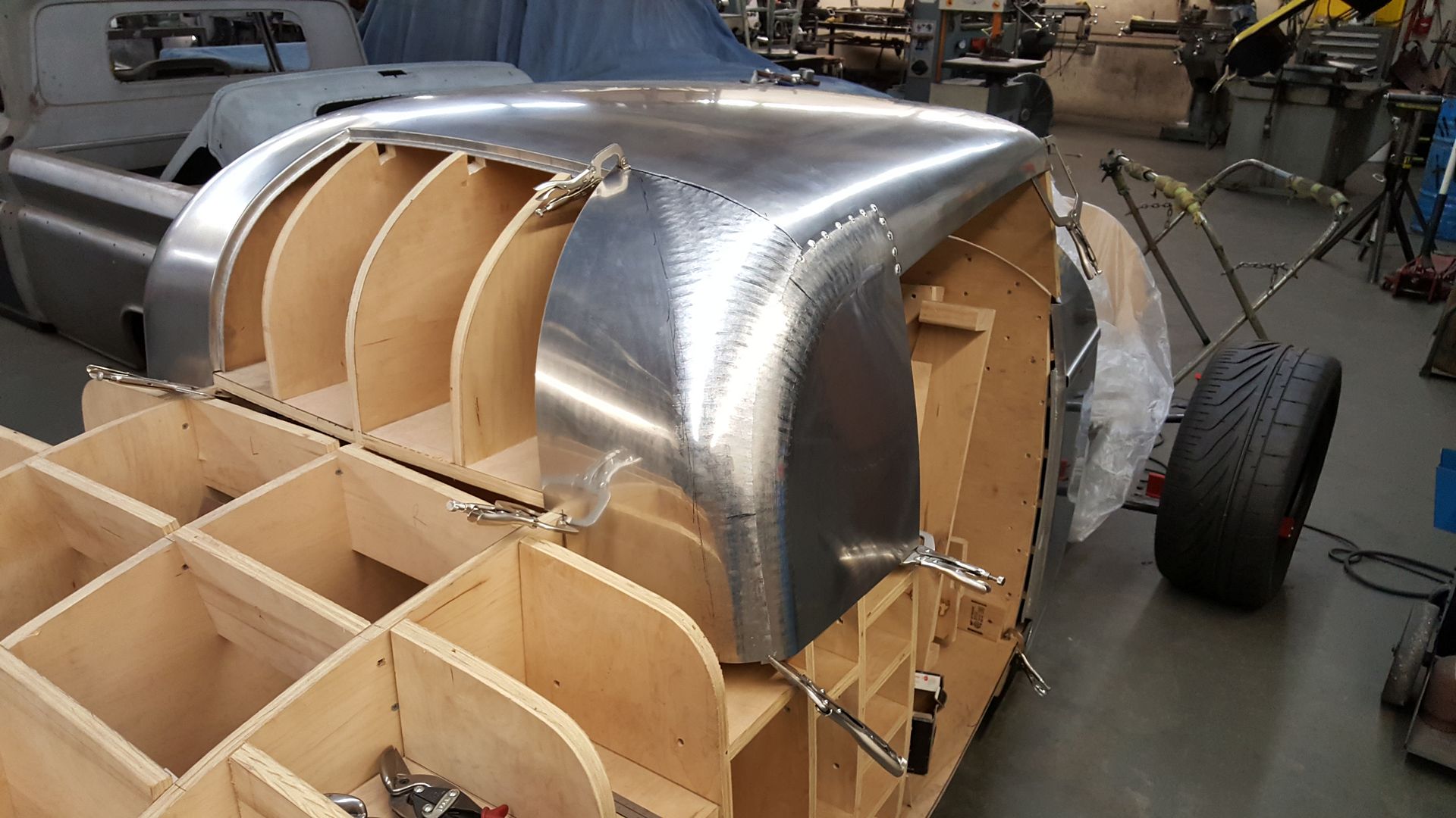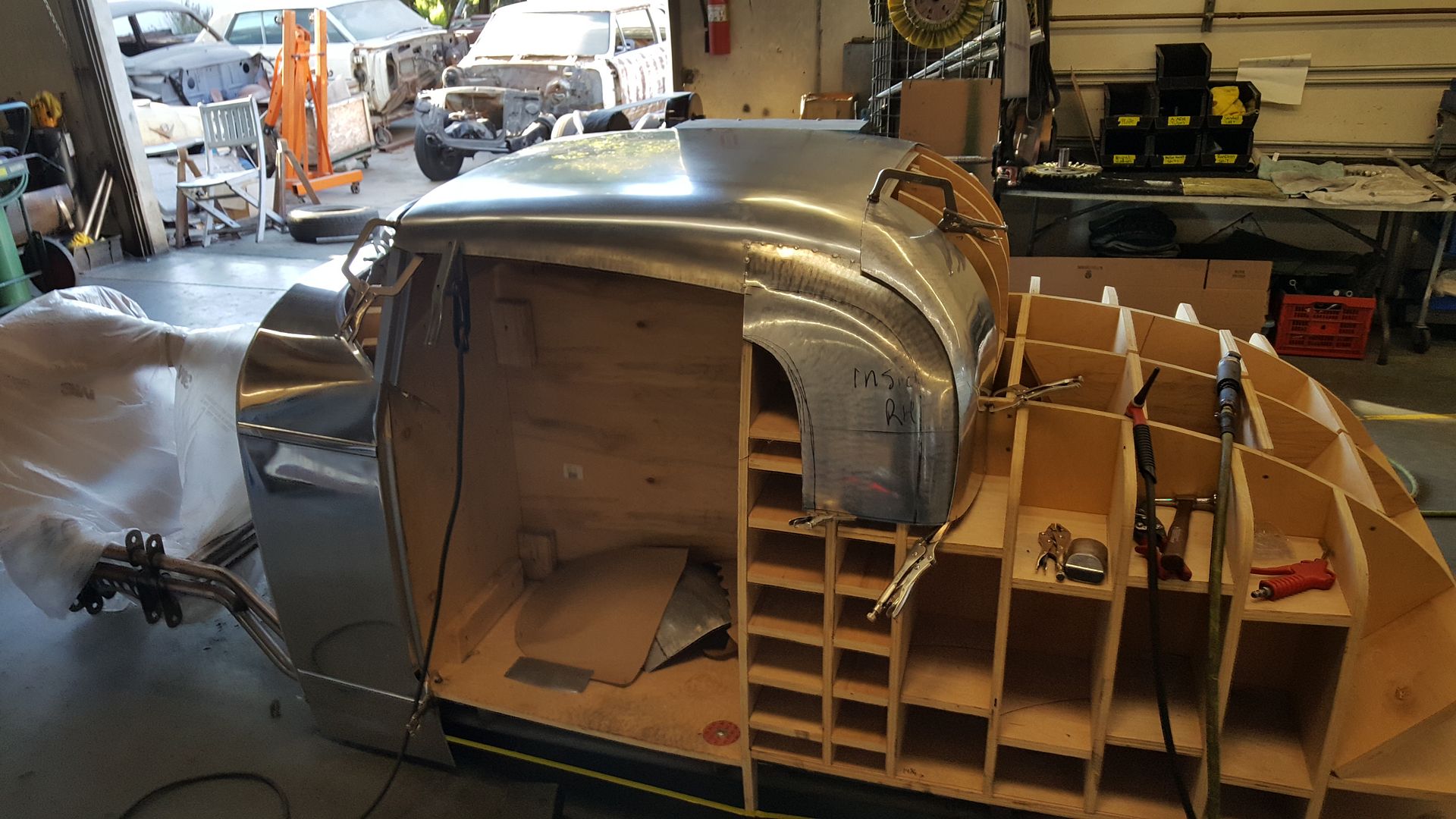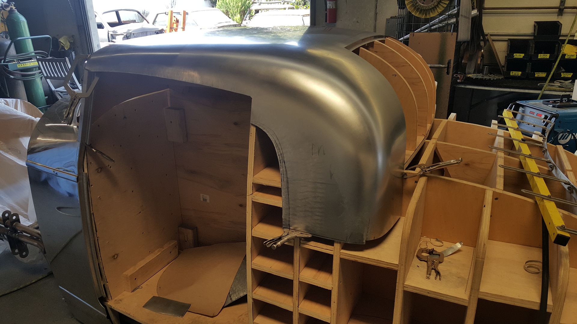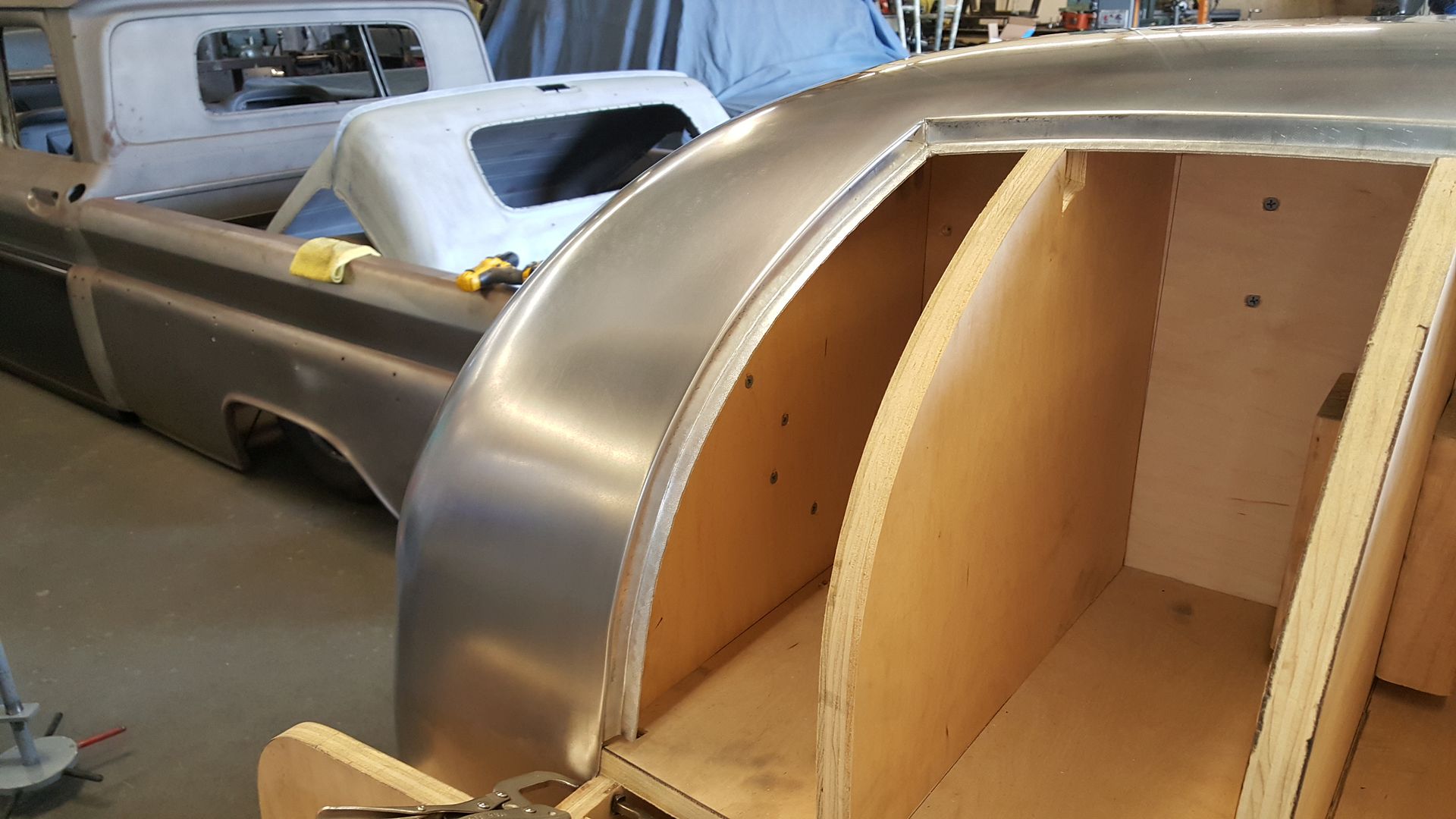 http://i205.photobucket.com/albums/b...3_103451_1.jpg once he was done I got back to working on the roof skin and I got the upper edge of the rear window made and in. http://i205.photobucket.com/albums/b...723_150041.jpg http://i205.photobucket.com/albums/b...4_143258_1.jpg I also was able to get the left rear side of the roof made and in place as well as a good start on the right side. http://i205.photobucket.com/albums/b...727_183828.jpg http://i205.photobucket.com/albums/b...727_191428.jpg http://i205.photobucket.com/albums/b...730_131348.jpg |
