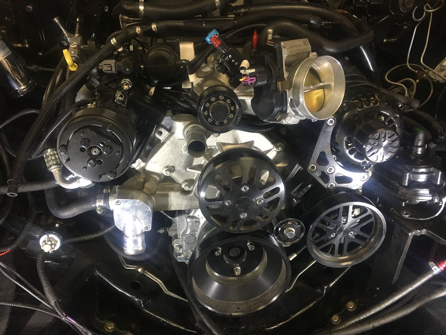 Moving along...… Got the new Harmonic Balancer installed...… LS engines are a treat in changing these......LOL.....Finished up with the drivers side install..... The Wegner unit is very well engineered..... But.. It is much wider than the Concept1 assy...…. Gonna have to remake the inlet Tube and move the Intercooler pump and change some of the power steering lines to clear the Belt...Here's today's progress