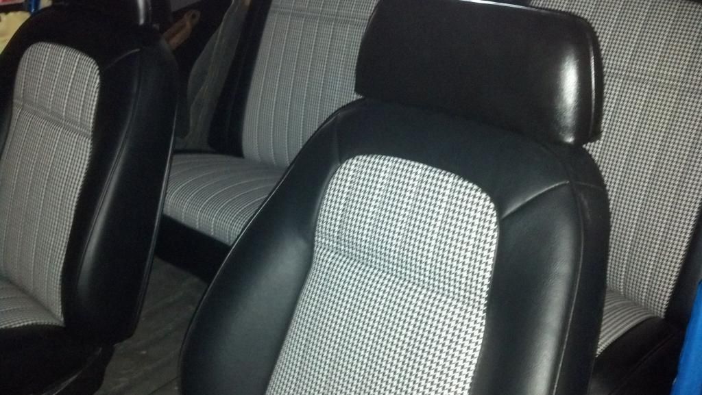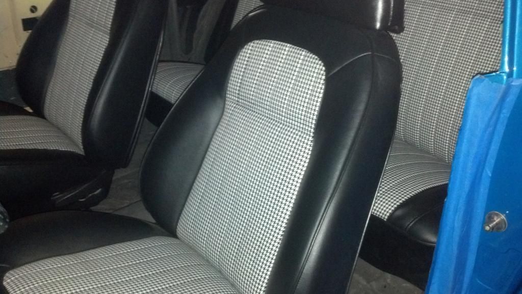 http://i1072.photobucket.com/albums/...ps1765045a.jpg Here is the Seats with the Houndstooth. http://i1072.photobucket.com/albums/...psa8619e47.jpg http://i1072.photobucket.com/albums/...psf9ce042c.jpg Also got the ram horn exhaust back from being coated with the Cast Iron color so it will not turn on the car. Trying to keep that old school look. http://i1072.photobucket.com/albums/...ps05c2a78f.jpg Looks like the Sub Frame with the Engine and Tranny will be coming out this weekend. Get the Sub Frame off to the Powder Coater and then start hanging the Suspension and install motor & tranny before is slide back under the body. Enjoy. Ed |