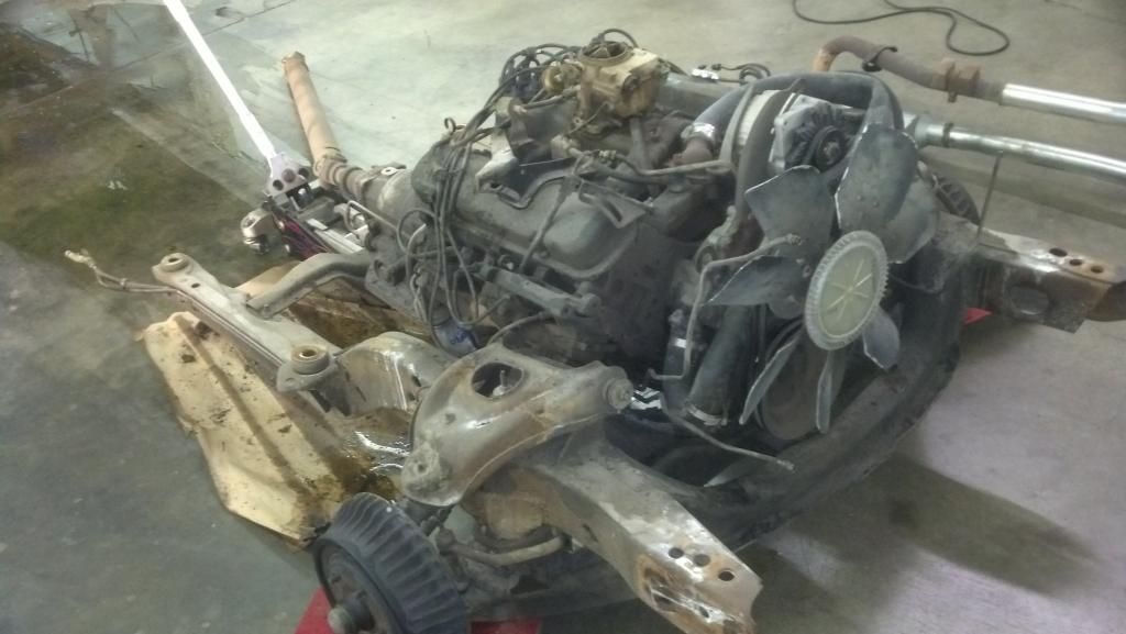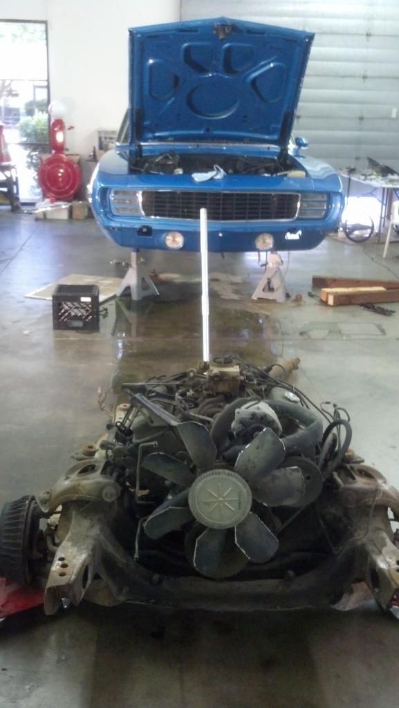 Here is the sub frame with the engine and tranny slide out from the car. anyone need a 350/350.