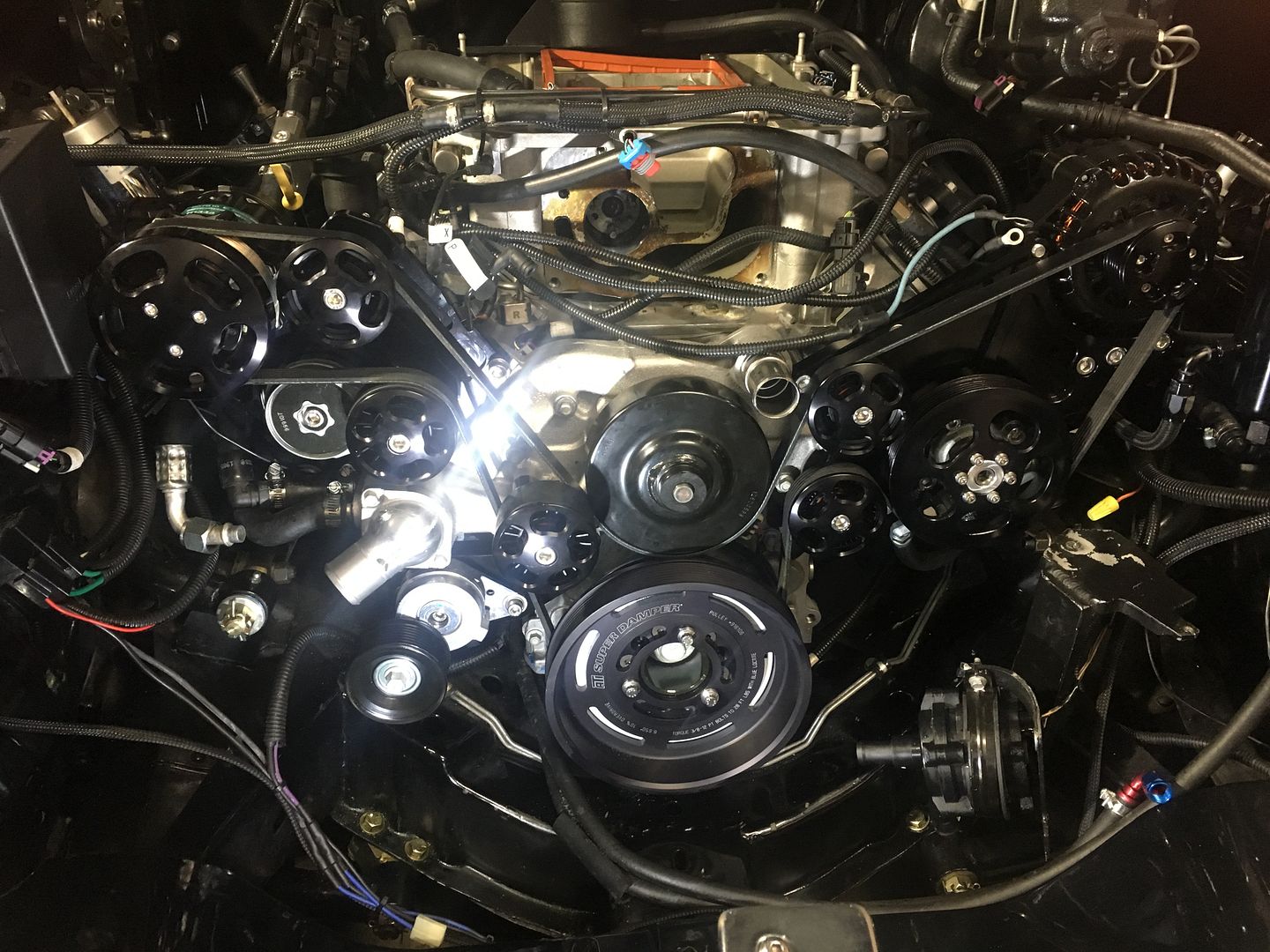 And on we go.....Had to remove the Supercharger Snout to change the drive pulley as the Wegner pulley is moved back (about 3/4") to the stock position.... Got that done..... Then while the snout was off I looked inside the Supercharger and noticed that the engine ordered a couple of years after GM changed the design of the Drive isolator from a Spring one to a solid one... It ended up having a spring one in it...