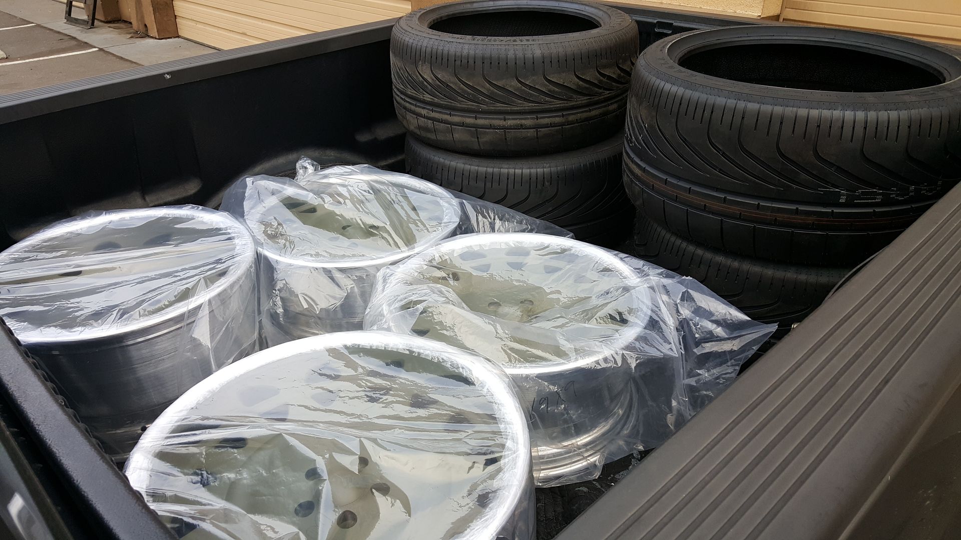 I picked up the freshly finished one-off wheels from Chris Coddington last thursday night! Then off to the tire shop for mounting the next morning.