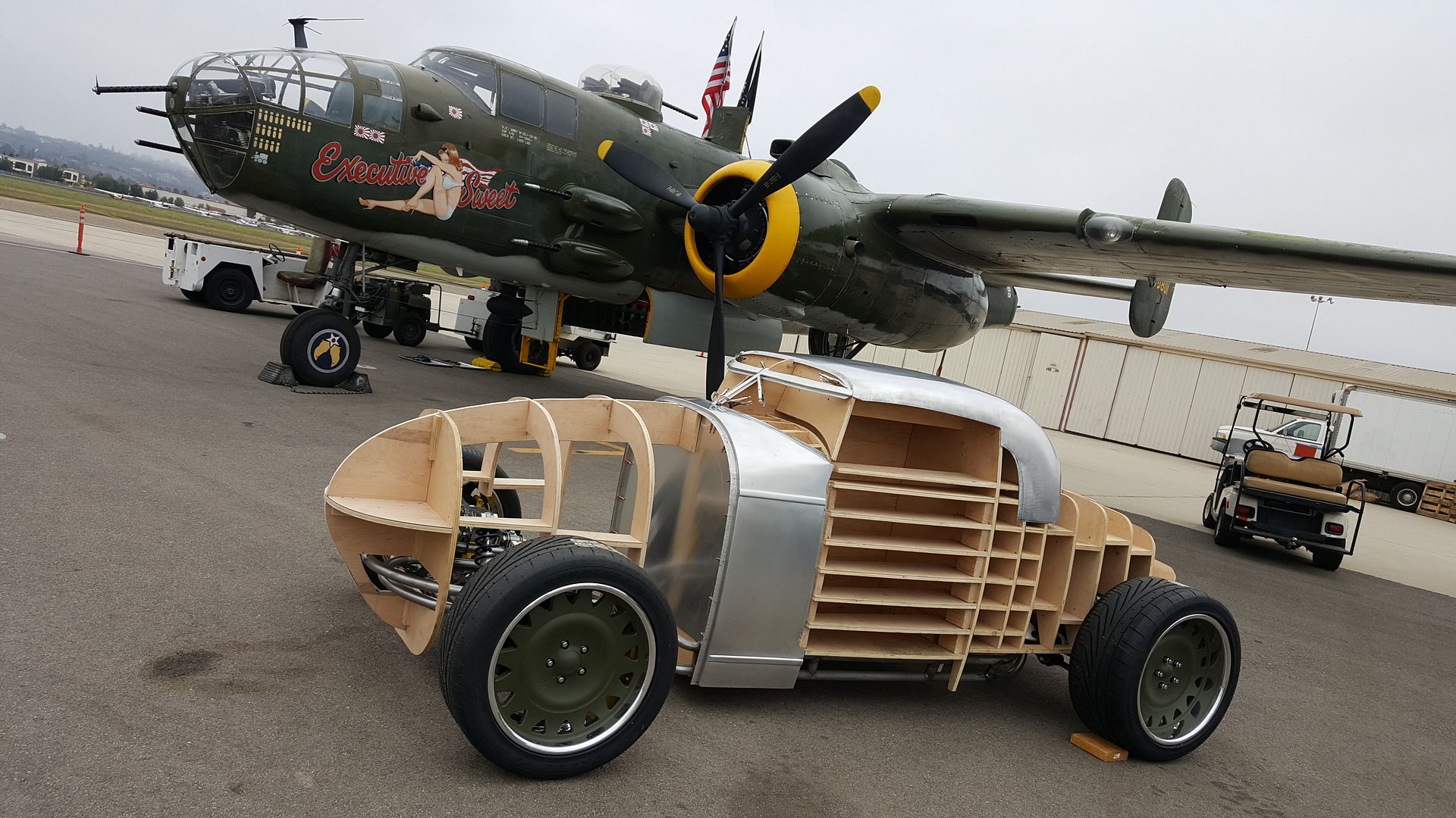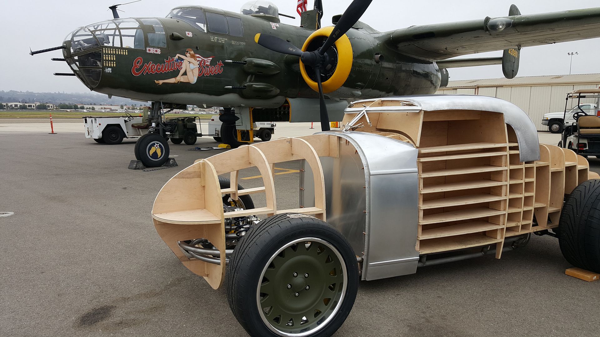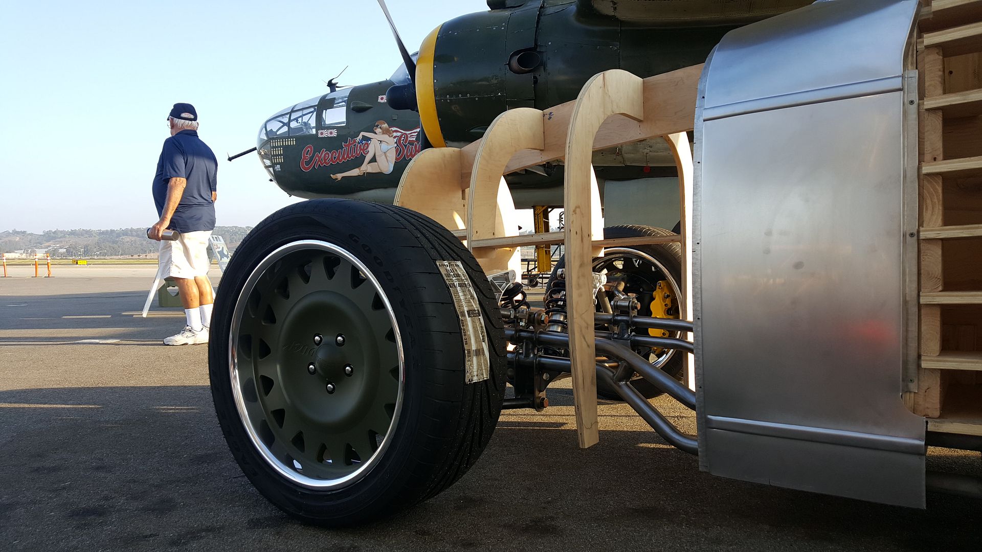http://i205.photobucket.com/albums/b...818_202539.jpg http://i205.photobucket.com/albums/b...818_202609.jpg http://i205.photobucket.com/albums/b...819_072942.jpg friday after work I bolted on the brakes and wheels just in time to roll the car outside and onto the trailer to depart for it first public showing at the Wings Over Camarillo Airshow last weekend! http://i205.photobucket.com/albums/b...819_183449.jpg http://i205.photobucket.com/albums/b...819_183505.jpg I was so honored to park the car next to this beauty and my friends that operate it with the AAF Group! http://i205.photobucket.com/albums/b...820_072731.jpg http://i205.photobucket.com/albums/b...820_082915.jpg http://i205.photobucket.com/albums/b...820_082920.jpg |