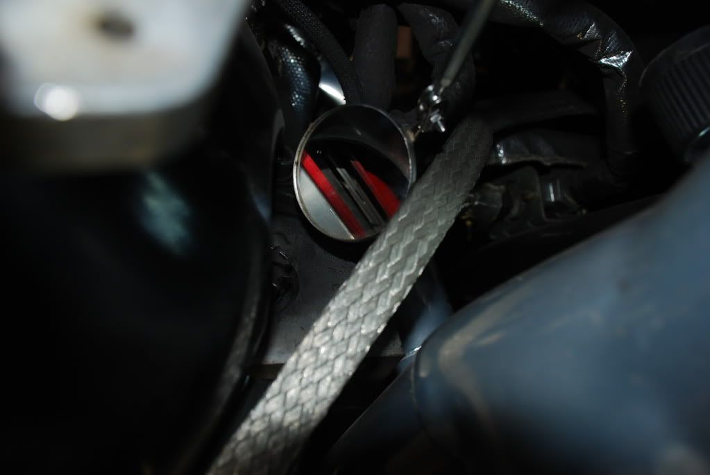 Not wanting to spend $4,000 swapping over to a t56 magnum, I thought I'd take one last swing at this tko 600. I did a bunch of research and found one blaring similarity with happy racers. Clutch Air Gap. I've seen claims up to .080 needed for a smooth shifting 600. So I went to work and was able to get approx. .050. That puts the engagement at the very top of the pedal travel and barely any air gap between the throwout and pressure plate. It's not getting any better with this clutch. I ended up using an allen wrench as getting into the starter hole with some feeler gauges wasn't my idea of a good time. You can see the allen wrench in the 5 o clock position.