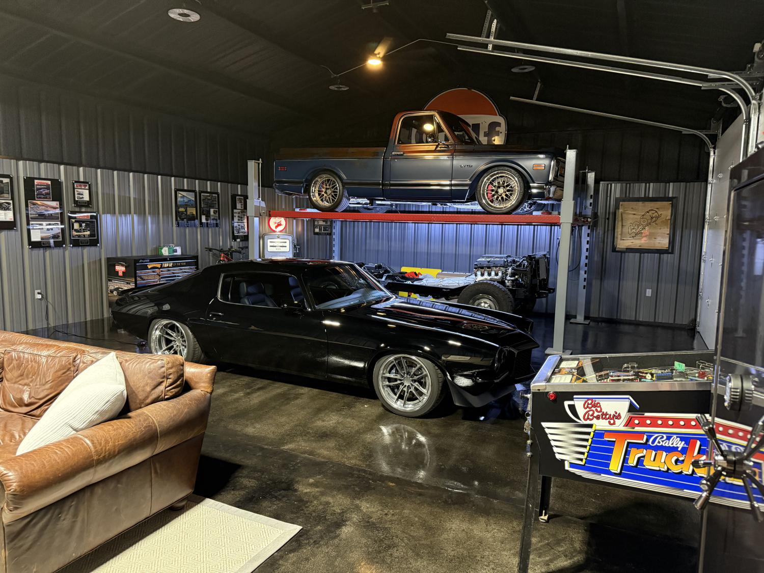 The cars been back at Vastine’s for a while getting a few things touched up after competing last year for Muscle Machine. Got it home for good. Now to move on to the chasssi sitting in the background for my 76 K5. |