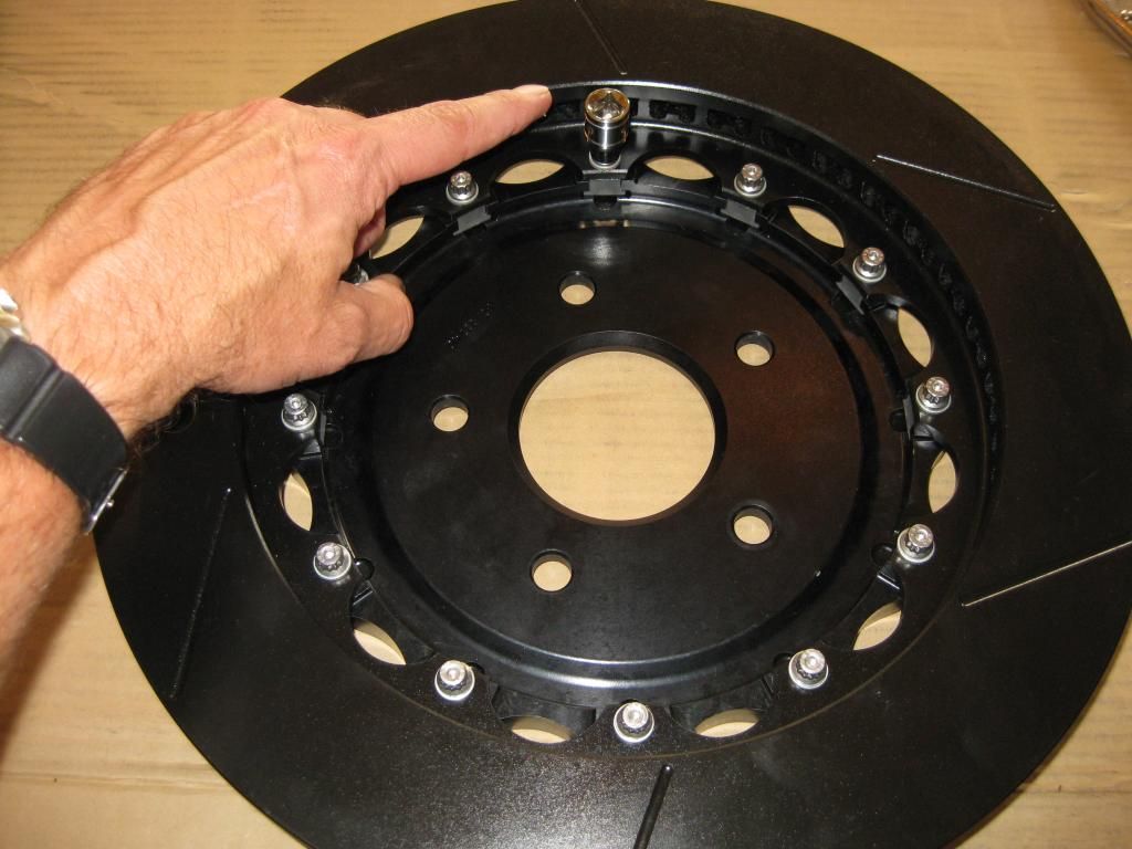 Why worry about assembling brake parts right.:lmao: http://i291.photobucket.com/albums/l...psc618e490.jpg I'll run through this quick. It also gives me a chance to show off my Wilwood floating hats.:hapdance: Here one is. http://i291.photobucket.com/albums/l...ps7ae7549b.jpg It's AL like most of the front hats but you'll notice the T slots in it instead of just threaded holes. Into these you inset these little T nuts. http://i291.photobucket.com/albums/l...ps209457fa.jpg http://i291.photobucket.com/albums/l...ps977e9b3b.jpghttp://i291.photobucket.com/albums/l...pse83d7269.jpg Man that is a crappy picture. I can't wait to hear GWs comment on that one. :rolleyes: This allows the rotor to "float" on the hat. This really separates the hat and the rotor into two separate pieces. Having two separate sections of the rotor and hat helps to keep heat generated in the rotor off of the hat. By keeping the hat cool you are less likely to have any flex, giving you more feel and braking predictability under extreme braking conditions. A floating rotor also allows for much more contact surface between the rotor and brake pads since the rotor itself follows the path of the pads correcting any imperfection either may have as it floats. http://i291.photobucket.com/albums/l...psc1ae3024.jpg Now with anything that requires a definitive torque value I make sure the threads are clean and free of burrs. In most cases that means a quick run of a tap through the threads. In this case the stainless bolts are nice and hard compared to the T nuts so I just dry fitted them. If any of the bolts had bound as I was assembling the rotors I would have got a tap out for that one. :warning: With these T nuts you use a small T wire to ensure the nuts don't rotate as you torque the bolts. http://i291.photobucket.com/albums/l...ps65c2356b.jpghttp://i291.photobucket.com/albums/l...ps761e80e0.jpg I didn't have any issues with this set. Once the rotors are completely assembled to hand tight it's time to loctite and torque them. I use two sockets of the same size to make the next step easy. Once I torque a bolt I leave the socket on it and then go to the bolt directly across to torque in a criss cross pattern. the first socket serves as a marker to remind me where I just was. http://i291.photobucket.com/albums/l...ps2e5321eb.jpg Once you put a bit of loctite RED on all the bolts bolt and torque them to 125 in lbs (in this case) it's time to get out the safety wire pliers.:hairpullout: :cheers: |