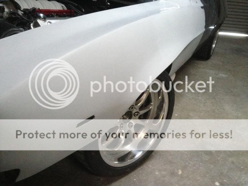 On the other hand, the work on OLC's fenders were pretty extensive and required both cuts and English wheel work. They are really two completely different animals. In about a week I can tell you how big a tire you can fit. |