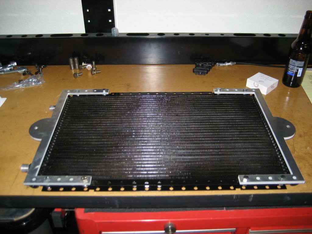 T, when is the new mondo radiator suppossed to show up? Please get pics of it also---looking forward to the setup of the oil cooler portion of that. Are you plugging in a power steering cooler as well?