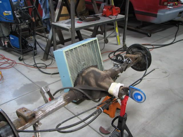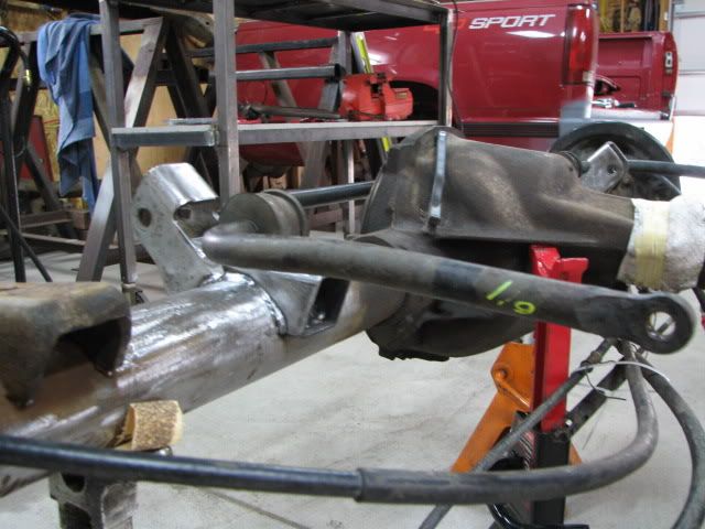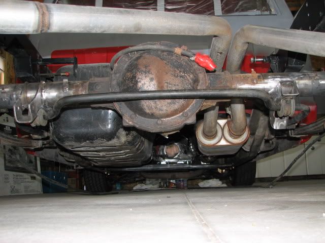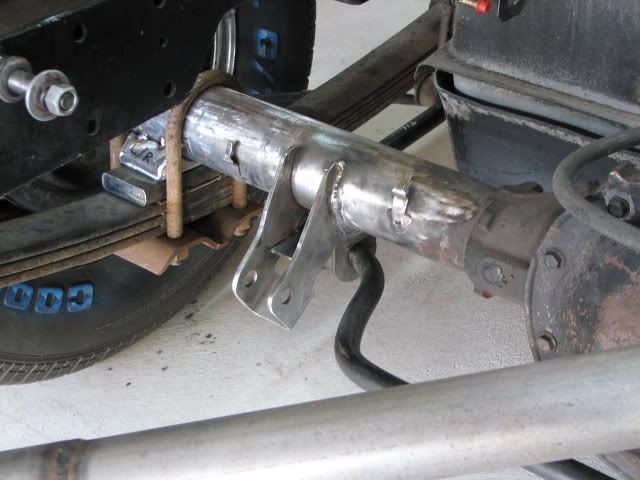 I put the rear end back in place today to locate the new spring perches, and bolted up the sway bar to make sure everything fit right. Remember I am doing the mock-up on the old frame before I xfer everything to the new (old) frame. The old perches had the rear pinion pointing 5 degrees up. Everything seems to fit really well. Now I can get the cab off and really start getting after it.