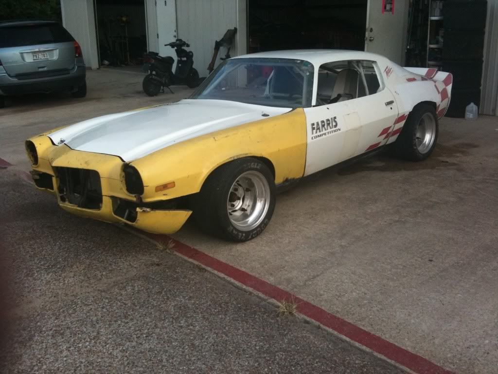 http://a4.sphotos.ak.fbcdn.net/hphot...40920221_n.jpg http://a7.sphotos.ak.fbcdn.net/hphot...65169953_n.jpg Still need to make the fuel door, and wetsand/buff a couple areas, thats it. I didn't realize at all how late I was at the shop last night till I glanced at my watch and it was 4am, haha. http://a7.sphotos.ak.fbcdn.net/hphot...61377615_n.jpg Just laying things out, have a TON of room compared to the 240, its rad!!! And this is just incredible. No cutting fenders, measuring 3-4 times plenty of room for control arms and no steering interference, this is gonna be awesome! Should be able to get about this much angle no big deal http://a1.sphotos.ak.fbcdn.net/hphot...12693153_n.jpg This is where I left tonight, pretty excited!!! http://a4.sphotos.ak.fbcdn.net/hphot...27991678_n.jpg Tomorrow gonna try to watch SHSU go 13-0, and get the rear end mounted and start mocking that all up and if I can find some parts around the shop maybe start tryingt o formulate a gameplan for connect the dots. Super stoked!! Was really worried about some aspects of this but it seems like it's going to be a cakewalk compared to what I thought! Still going tob e a lot of work, but having a 70 Camaro that I can do anything from cruise to Taco Bell, rev my engine all sick at a street light, drag race, drift, autocross, take to track days will be sooooooooooooooooooooooooo worth it in the end. |