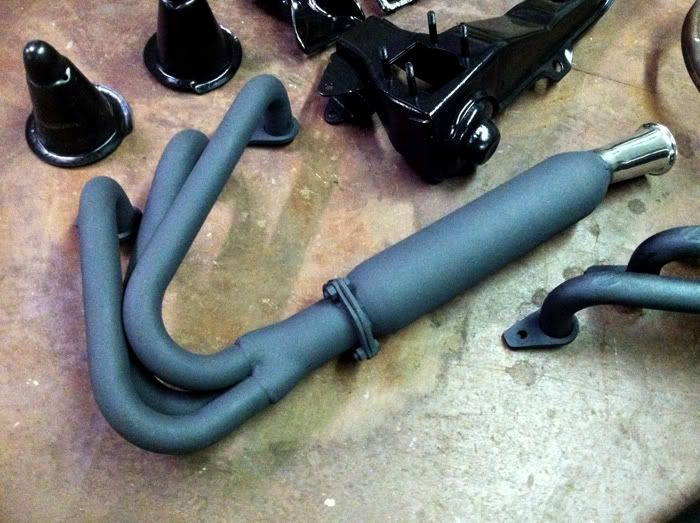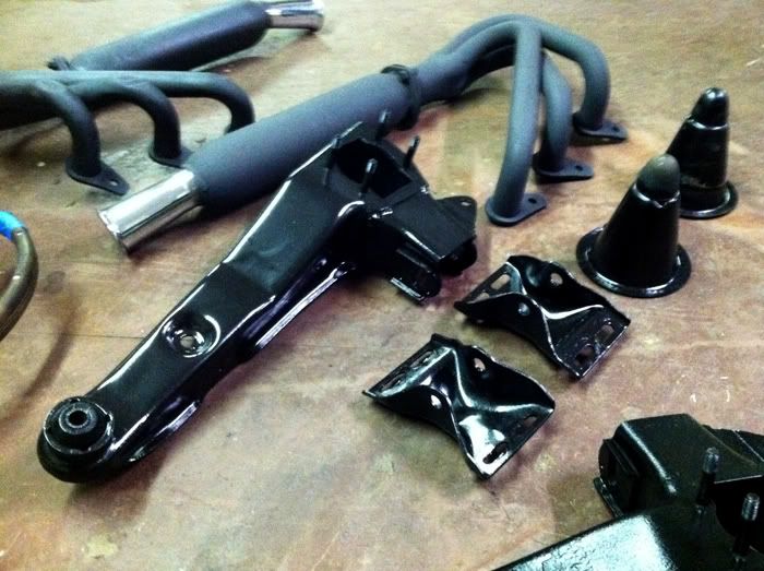 Small progress today. A few buddies were hanging out at the shop tonight so we spent some time on the Vair. Some of my suspension parts came in today for the rear, so I figured i'd better start sanding down the wheel wells for paint before it goes back together. I used the old standby - wire wheel on a drill: http://i15.photobucket.com/albums/a3...113_211627.jpg Might be about time to invest in a real dust mask... http://i15.photobucket.com/albums/a3...3_211638-1.jpg I started it off but the guys got tired of watching me work and took over, which I happily agreed to. All this sanding is wearing me out. It turned out pretty damn good. Before: http://i15.photobucket.com/albums/a3...h2/photo22.jpg After: http://i15.photobucket.com/albums/a3...h2/photo29.jpg I'll be painting it with 3M rubberized undercoating. I ran out of cleaner so I need to do a Home Depot run before I can finish and paint it. When it comes time to tear the drivetrain out of the car, I'll do the same for the engine bay and the other side of the frame rails. We had to remove the header to get deep inside the wheel well, so I figured I'd see what condition the headers were in. There's fuel AND oil leaking from the motor, so the headers have a thick layer of rust and grease on them. Again, the wire wheel worked wonders. We also used some fine-mesh steel wool to polish the exhaust tips. Before: http://i15.photobucket.com/albums/a3...h2/photo28.jpg After: http://i15.photobucket.com/albums/a3...h2/photo30.jpg http://i15.photobucket.com/albums/a3...h2/photo31.jpg Amazing what a few minutes of scrubbing can accomplish. Again, no degreaser, so I'll have to wait a couple of days to paint. This is also all from one side, the other side of the car still needs to be sanded down the same way. Small steps! |