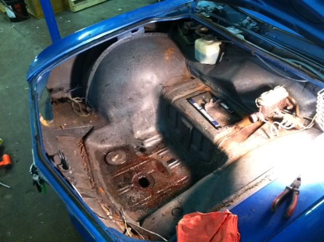 Spent a few hours on the car the last couple of days. Got through 75% of the interior prep for paint: http://i15.photobucket.com/albums/a3.../photo16-1.jpg Still have to do the front floorpans and under the dash: http://i15.photobucket.com/albums/a3.../photo18-1.jpg Also started stripping the seam sealer from the trunk. A quart of oil was stored in there and leaked all of the place apparantly, so it'll require some good cleaning: http://i15.photobucket.com/albums/a3.../photo15-1.jpg http://i15.photobucket.com/albums/a3.../photo19-1.jpg I also took out the headlight buckets to deal with some rust issues around the edges: http://i15.photobucket.com/albums/a3...2/photo3-4.jpg And finally, I took apart the rear suspension for rebuild: http://i15.photobucket.com/albums/a3...h2/photo22.jpg I'm going to prep and undercoat the wheel wells before it all goes back together. I'm sending the hubs and axles out to a guy named Steve Goodman who does full rebuilds on them, and I ordered some poly bushings to replace the original worn-out stuff that came out. Stuff for Steve: http://i15.photobucket.com/albums/a3.../photo20-1.jpg Out with the old: http://i15.photobucket.com/albums/a3...h2/photo23.jpg That's all for now, here's how it sits as of tonight: http://i15.photobucket.com/albums/a3...h2/photo24.jpg http://i15.photobucket.com/albums/a3...h2/photo25.jpg Until next time! |