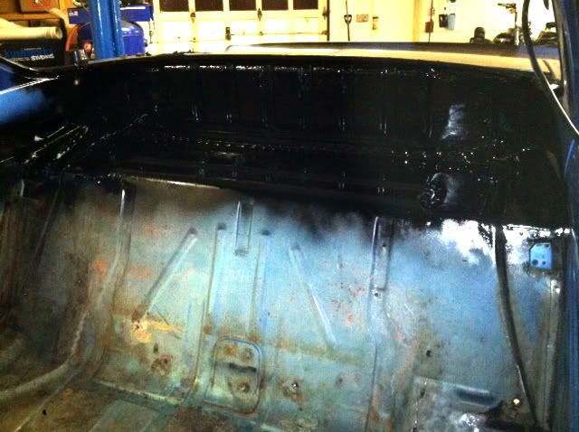 http://i15.photobucket.com/albums/a3.../photo10-1.jpg http://i15.photobucket.com/albums/a3...2/photo8-1.jpg http://i15.photobucket.com/albums/a3...2/photo4-1.jpg There's only two spots on the rear floors that need attention - one 8"x8" section that I need to cut out and replace, and another small area that just needs some patching. I'm VERY surprised that there's not more rust (knock on wood). It was killing me to do all of that work and not see what the new paint would look like, so I de-greased a small section in the back and laid down four coats of "Rustoleum Automotive Enamel". If you ever use this stuff, DO IT OUTSIDE. This is not spray paint, this is death in a can. Holy crap. I'll be doing the rest of the painting outside for sure. http://i15.photobucket.com/albums/a3...2/photo3-1.jpg http://i15.photobucket.com/albums/a3...2/photo1-1.jpg That's all for now, next step is to finish off the floors, patch the bad spots, and finish painting the interior. Then it's off to the wheel wells and suspension. |