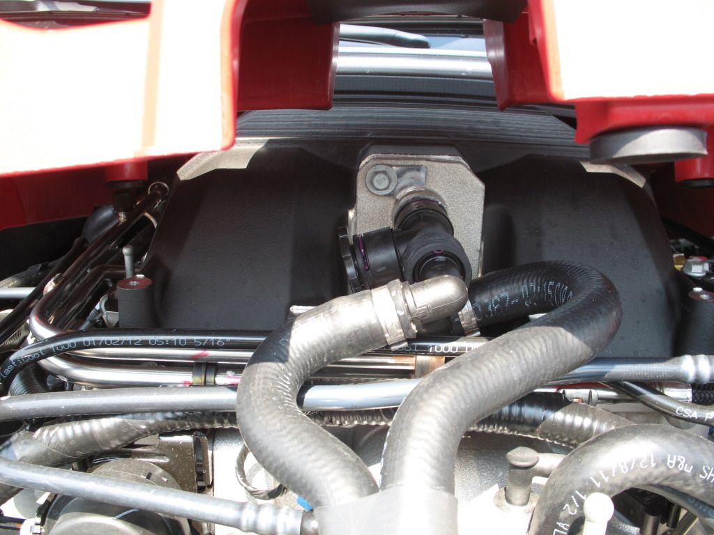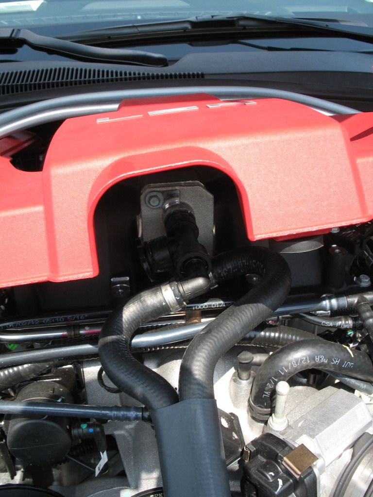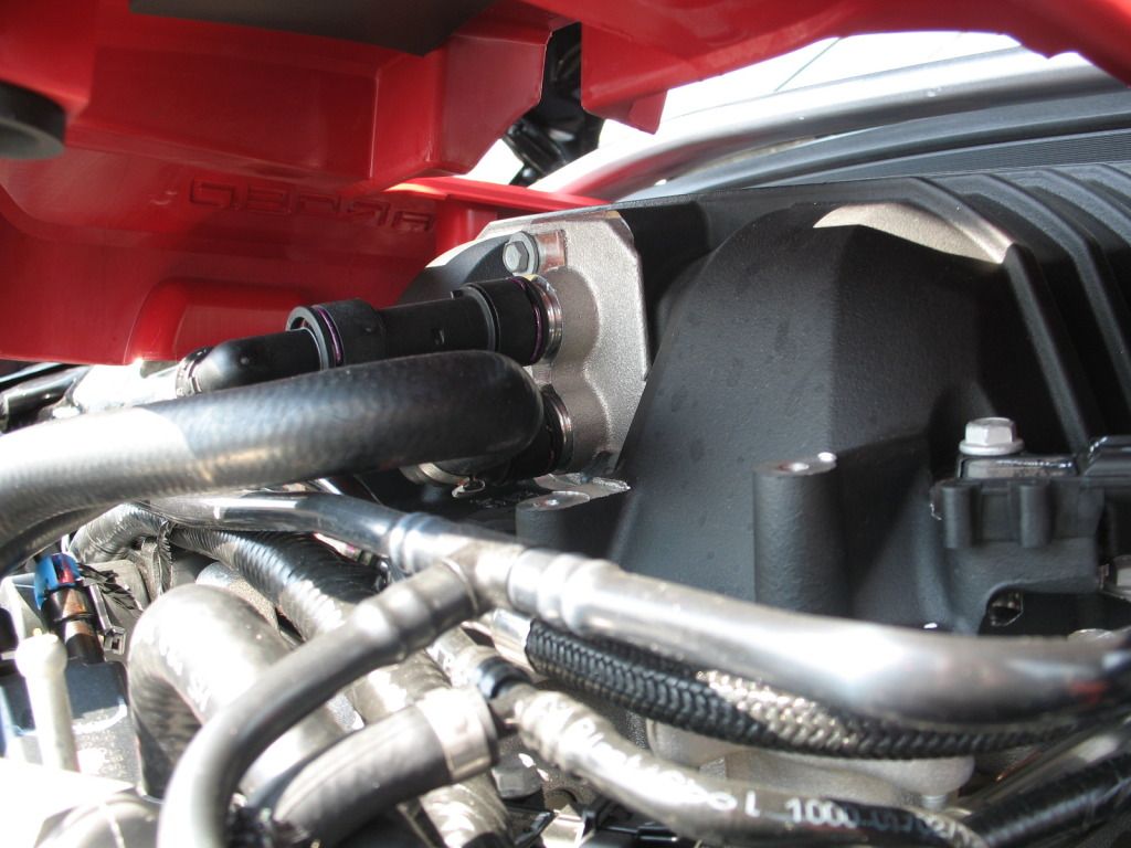They were nice enough to let me take a few quick pictures of the intercooler lines where they exit the front of the supercharger. As I stated in my earlier post, we were a little concerned that the coolant line and the fuel rail would want to occupy the same space and we might need to get a different fuel rail but it looks like the fuel rail on the LSA crate motor and the ZL1 are the same piece. The bottom ZL1 intercooler line just makes a zig zag to miss the fuel rail before it snakes out from the middle of the engine cover. By the way, Chevy did a really nice job on the exhaust note of the ZL1. In my opinion, it definetely sounds better than my C6Z06. I'm just posting these pictures here in case someone needs to figure this out later for their own build. http://i1140.photobucket.com/albums/...IMG_3205-1.jpg http://i1140.photobucket.com/albums/...IMG_3209-1.jpg http://i1140.photobucket.com/albums/...i/IMG_3237.jpg http://i1140.photobucket.com/albums/...i/IMG_3236.jpg http://i1140.photobucket.com/albums/...i/IMG_3235.jpg http://i1140.photobucket.com/albums/...i/IMG_3234.jpg http://i1140.photobucket.com/albums/...i/IMG_3233.jpg |
