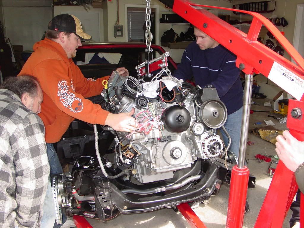 garage built in a two car garage. Pulled the body off my self using a jack,jack stands and 2x4. I pulled a macgyver!!!! You sort of have to though when your the only one home and you want the body off the frame. I built the motor at the shop I used to work for, turned out great. Did the body work in a old body shop in the ghetto of oakland(SCARRY).
