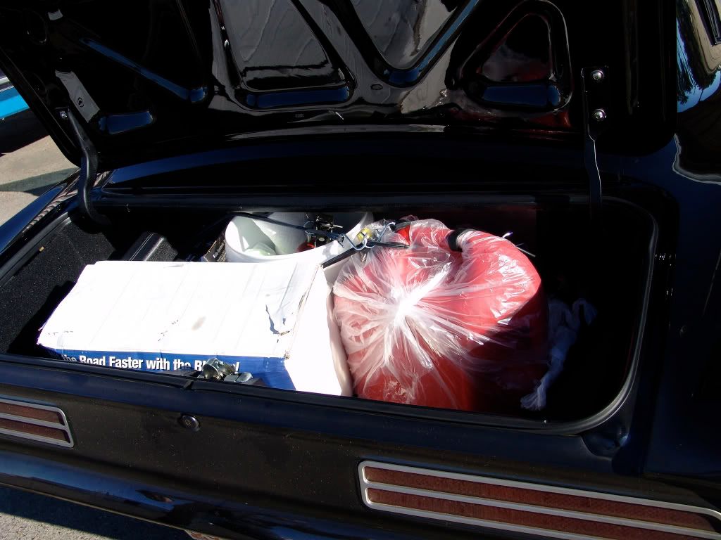 1/2qt. of oil. That 13g tank is a pain on a long road trip. One ground issue with the tail lights related to a ground issue with the fuel-gauge. Lights are working, still an issue with the gauge. The idiot light is still on.(check engine) Some issues with the DSE electric RS headlight units, it gave us a hassle the whole way now I have some zip ties holding it together.(works better now) I also noticed some 'sweating' of fluids from the rear. Valve cover coming lose, a loose lower radiator hose. Some interior fit issues that became a bit of a pain. That's about it! http://i232.photobucket.com/albums/e...sebugshots.jpg http://i232.photobucket.com/albums/e.../forcebugs.jpg Trunk shot. Tools, gas, wash stuff and a "bike dryer" for drying the car. (warm filtered hot air) http://i232.photobucket.com/albums/e...ulltrunk-1.jpg |