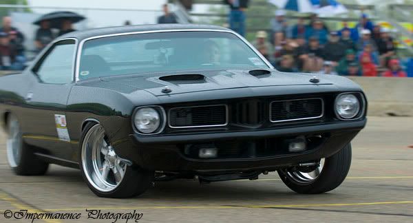 Excellent job Telly! Thats great that you can drive it, enjoy it, and still work on it. I like the wheels just the way they are, think that if the centers were black it would take away from the loks of the car. That stance is killer! You were on the money. I bet those poor Nittos get a heck of a workout with that Hemi, I own a 72 Camaro Z28 and a Cuda or Challenger are the only two cars I would even consider trading for. Great job, very clean not over the top crazy, just tastefully done. NICE!:cheers: