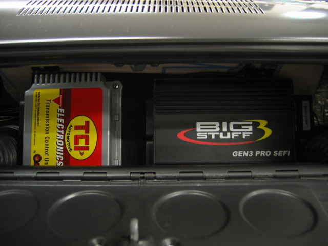 http://www.camcojb.com/temp/malitude%20307.jpg I order a classic update wiring harness from American Autowire (again through Frank!) which will be here Friday. It will be much easier to start from scratch than try to splice all my new systems into the other harness that's currently in the car. So in the mean time, I mounted my BigStuff 3 ecu in the glove box along with the trans controller (switching trans controllers in a couple weeks, but I'll fill you in on that when it happens). http://www.camcojb.com/temp/malitude%20298.jpg I ran the BS3 harness through the firewall and have cut to length and terminated all the sensors. Am in the process now of trying to hide the wiring as much as is reasonably possible for a clean look. http://www.camcojb.com/temp/malitude%20309.jpg I also ditched the dual Bosch fuel pumps. I love the idea of them, running one all the time with the second coming on with boost, but there's just no way to neatly plumb them in the limited room under the car. No matter how I tried there were too many loops, etc. in the system to fit in the required width I had to work with. So I had a new Aeromotive pump, regulator, and pump controller in my shop, and decided to go this way. I regulate the fuel at the back of the car to keep the hot fuel from being bypassed to the tank. Running the fuel through the rails before being bypassed to the tank has caused many issues on long drives like Power Tour, and being that this car is going this year I do not want any issues. And their pump controller slows the pump down during idle and cruise areas, so that further keeps the fuel temps down, and increases the pump life. http://www.camcojb.com/temp/malitude%20302.jpg http://www.camcojb.com/temp/malitude%20303.jpg Jody |