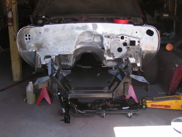 Well definitely not as exciting as the last update, but I did get some work today. I had to take the subframe off again so I could get the firewall done and painted. Once that's done, the subframe will be back on for good.