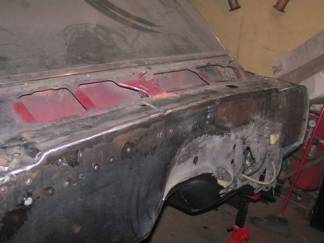 That rear looks sweet in there. The firewall's coming along too, looks good.
