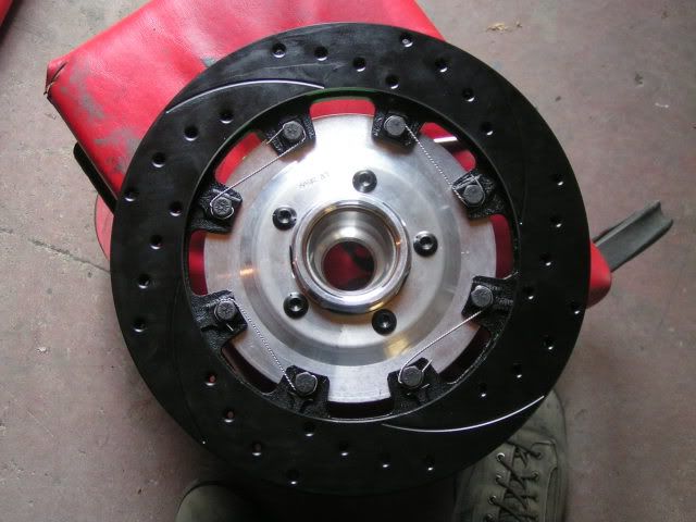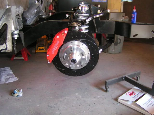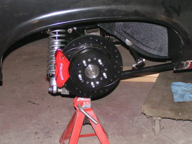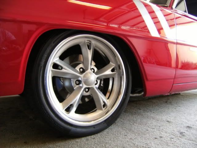 I finally got going on the front brakes. Not without issue though. I started putting them on last week when I found that Wilwood sent me too many of the bolts that attach the hub to the rotor and none of the bolts to attach the rotor to the adapter plate. I called them and after spending a few minutes convincing him that I knew what I was talking about, he agreed to send me the bolts. They were to me in Canada in about 4 days. Very impressed. So now that I had the bolts I was able to start attaching every thing. When I got to putting the entire hub assembly on I realized that when I bought new spindles, I never bothered to get new spindle nuts. Thankfully I called one of the local GM places and they were able to over night it. I went and got the nuts this morning and was able to get the passenger side finished. Here's some pics. Rotor with adapter plate on and showing the safety wire. At this point I still needed to run safety wire around the bolts holding the hub on. http://i222.photobucket.com/albums/d...ackofrotor.jpg The aluminum hub. Very nice piece of work. http://i222.photobucket.com/albums/d...herp69/hub.jpg The brakes are on :D http://i222.photobucket.com/albums/d...p69/brakes.jpg Close up http://i222.photobucket.com/albums/d...kescloseup.jpg I know some of you are wondering about the black coating. Apparently it will wear off with braking. I've been tracking my Vintage Air Gen IV kit and it should be to me by Monday or Tuesday. Next week I'll likely start mocking that up. |