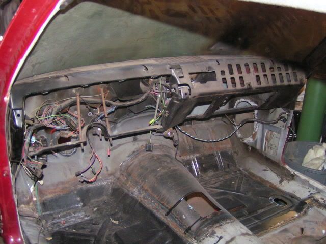 Well time for another update. Not a whole lot done, but it's getting there. The other day I was feeling a little destructive so I ripped out the rest of the dash. It really ticked me off, once I had the gauge cluster out, I put it on top of a cabinet for safe keeping. When I went into the shop this morning, everything that was on top of the cabinet was lying on the floor, including the gauge cluster. Unfortunately it has 3 big cracks in it and the radio area broke right off. As most of you know, the 68 gauge cluster is rare as it is one year only. I was thinking about getting a Covan's, I guess I'm committed to that now. Here's some pics: http://i222.photobucket.com/albums/d.../PICT00615.jpg Wiring harness out http://i222.photobucket.com/albums/d.../PICT00664.jpg If you've read the rest of my thread, you'll know that I had a little fire when I was welding the firewall. Here's the inside of the dash where the fire was http://i222.photobucket.com/albums/d.../PICT00683.jpg What ended up on fire....my defrost ducting. Guess I need to find a new one of those now too http://i222.photobucket.com/albums/d.../PICT00625.jpg As I was taking the dash apart, I found this. Add this to the list of strange things found in a car http://i222.photobucket.com/albums/d.../PICT00743.jpg I did some more work on the firewall and since I used sheet metal that I had laying around, it had some surface rust on it. I found some of these 3M pads that fit into a die grinder backing plate and they work great for taking off surface rust, paint and even POR15. They are not cheap, but well worth the money. http://i222.photobucket.com/albums/d.../PICT00554.jpg Here's how the firewall's looking. I'm getting almost to the point of putting primer on it, but then I got thinking. I want to put in a Vintage Air kit and I don't want to weld studs on the back of my firewall and ruin the primer/paint so will be ordering a kit from Frank at www.gpsuperstore.com and get it mocked up before I spray any primer. I've also decided to paint the firewall the same color as the car. I think I've decided on Viper Red for the car. It still needs work, but here's where I'm at: http://i222.photobucket.com/albums/d.../PICT00703.jpg Area around steering column http://i222.photobucket.com/albums/d.../PICT00732.jpg |