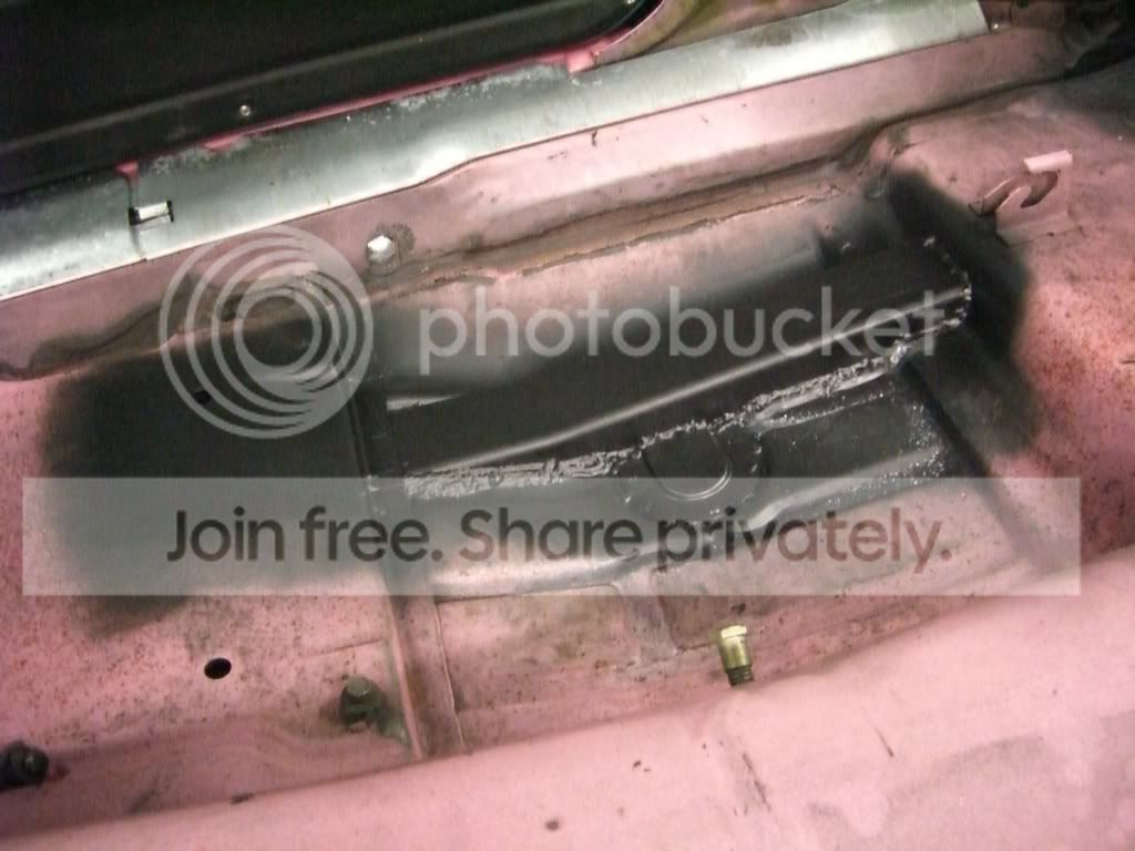 I'd scraped for a while and swept the floor when the debris got too messy twice before I took this photo. This is the third cycle of mess from the fourth circle of hell. Nothing but a heat gun, various scrapers and a wire wheel......and beer......and the Giants on the radio. http://i490.photobucket.com/albums/r...e/CIMG4201.jpg Looking from the drivers side rear toward the front. I left the bottom of the trunk pan alone, that'll be cut out. The dark bits forward of the back seatbelt mounts are just grease/dirt. That'll come off with simple green http://i490.photobucket.com/albums/r...e/CIMG4202.jpg I made it to the front seatbelt mounts and had to stop. http://i490.photobucket.com/albums/r...e/CIMG4205.jpg I hope to finish the scraping tomorrow and start with the de-greasing. I have a plan in mind for that. Not sure if it'll work. Good thing the wife will be away. It's going to be messy. |