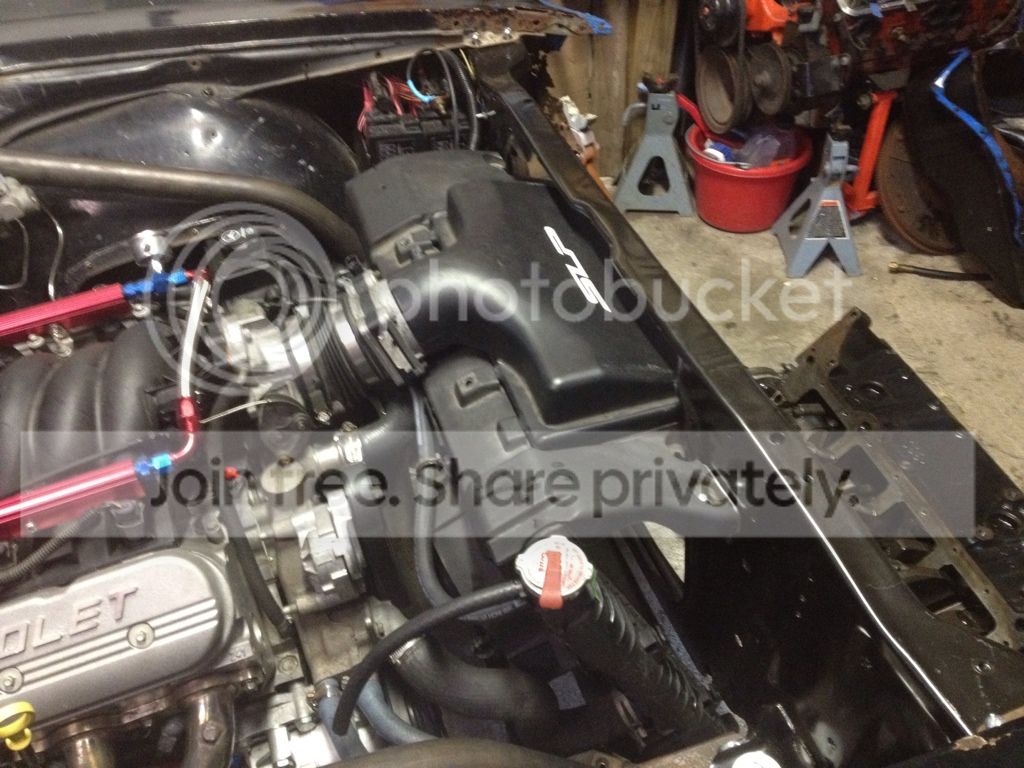 Who knew? buying a part for an American car, that was built in Asia would take some American engineering to make American made parts to fit it into an American car? http://i539.photobucket.com/albums/f...77B2E7145A.jpg Installed and ready to mock up the intake ducting, http://i539.photobucket.com/albums/f...255E1D9037.jpg picked up a radiator support from the junkyard that I think might work, it's from a 6 cyl Camaro. http://i539.photobucket.com/albums/f...77BFB191CB.jpg Raditor support with my SLP lid installed, getting closer. I need to drop the Radiator about an Inch to make it perfect but I'm getting closer! http://i539.photobucket.com/albums/f...77C70FA6ED.jpg |