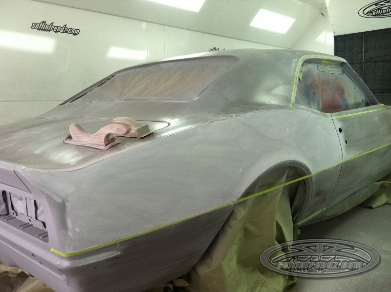 I'll update pics off FB this weekend. Shaved drip rails. Rear spoiler is getting worked right now. Front lower valance will look similar to Marquez's with the 69 lights. Car will get primed next week then blocked 3 times |