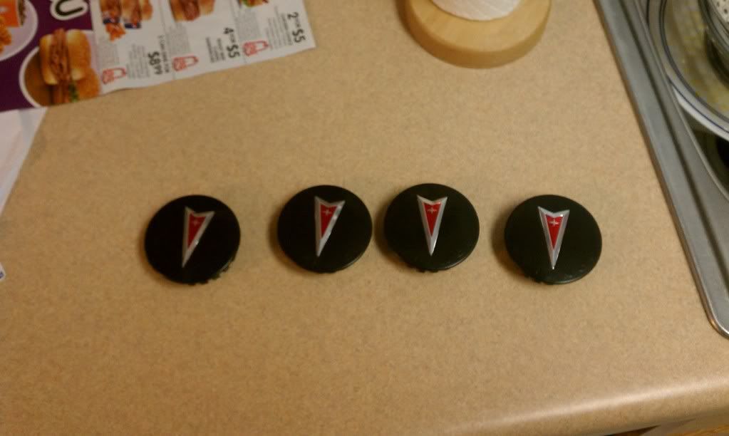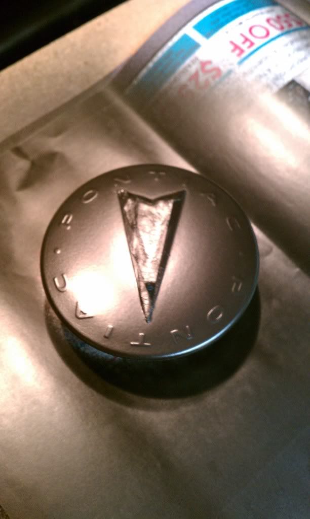 Back to the Pontiac - I've been rolling around with out any center caps for awhile now, I finally got a chance to paint the caps with the SEM trim paint that I ordered a few weeks back.