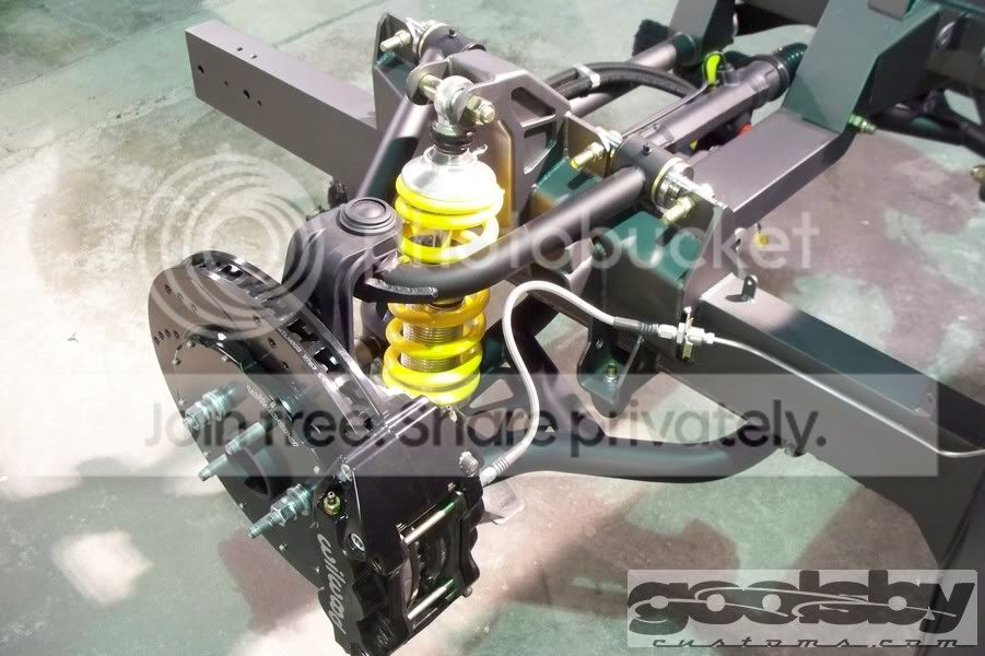 Here are a few more showing the underside before primer as well as the finishes on the Roadster Shop chassis and suspension and those huge stoppers from Willwood