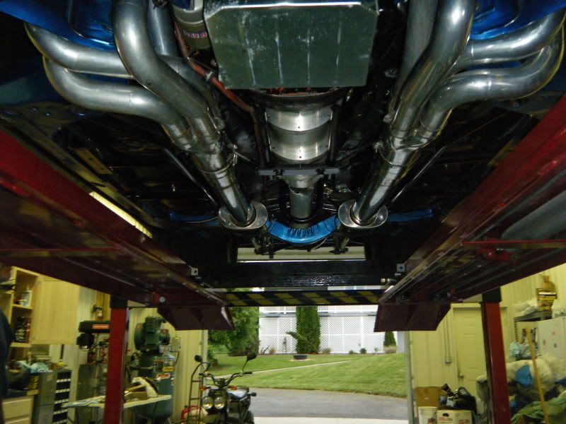 http://i24.photobucket.com/albums/c2...even/036-4.jpg http://i24.photobucket.com/albums/c2...even/038-1.jpg http://i24.photobucket.com/albums/c2...even/037-1.jpg http://i24.photobucket.com/albums/c2...xseven/302.jpg http://i24.photobucket.com/albums/c2...even/040-2.jpg it doesnt look like much, but ive kept myself busy on this old girl. in the past few weeks i built the whole exhaust, 3" mandrel bends with dynomax race bullets that im hoping arent too obnoxious for long trips. i got just about all the plumbing done in -8 stainless braided, of which i stripped the anodizing off all the fittings and polished them out, i also built stainless rad hoses, which are of course, polished. this weekend my friend and i aligned the car, and i got a few more pieces painted. the trans tunnels been modified for the six speed, and i got about a third of the car buffed out too. i also got a bunch of the trim repaired and back on the car to boot. ive also been really busy with my dads car, his 496 big block powered 66 chevelle. this winter he picked up a jeffco transmission, which is clutchless, and like a lenco has a lever for every gear. it is straightup badass. well, that transmission isnt shaped anything like the richmond 6 speed that is now in my car, so we had to make a few, er mild changes. the middle three feet of the floor was cut out and reshaped. a removeable tunnel was built, runners were ran on the frame for strength and an easier way for a tranny mount, new trans mount was built, new 4" exhaust was built that doesnt hang so low under the car and its got new carpet now and a new parking brake lever from lokar. it was an exhausting project, but we knocked the whole deal out in about 2.5 weeks. http://i24.photobucket.com/albums/c2...xseven/305.jpg http://i24.photobucket.com/albums/c2...xseven/304.jpg http://i24.photobucket.com/albums/c2...ven/011-20.jpg http://i24.photobucket.com/albums/c2...ven/009-22.jpg http://i24.photobucket.com/albums/c2...ven/008-31.jpg http://i24.photobucket.com/albums/c2...ven/007-30.jpg http://i24.photobucket.com/albums/c2...ven/005-32.jpg and a video. http://i24.photobucket.com/albums/c2...ven/th_310.jpg let me know what you think guys. |