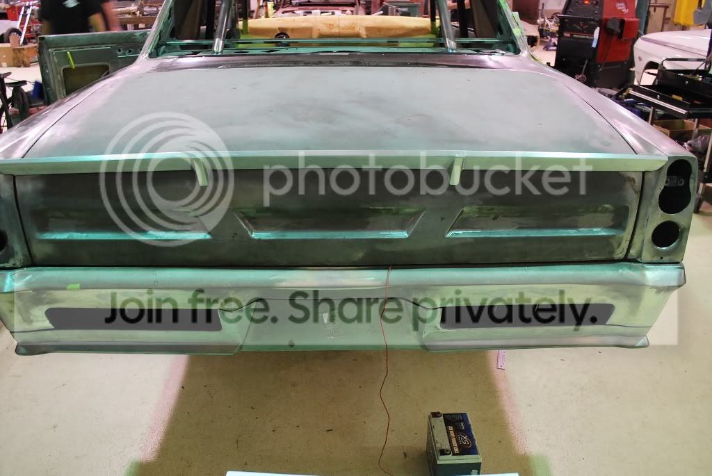 Here is a little more work on the rear of the car. Fabbed a rear lip spoiler and wrapped the lower quarter extensions into the bottom of the bumper. Also a preview of the custom billet tail lights.