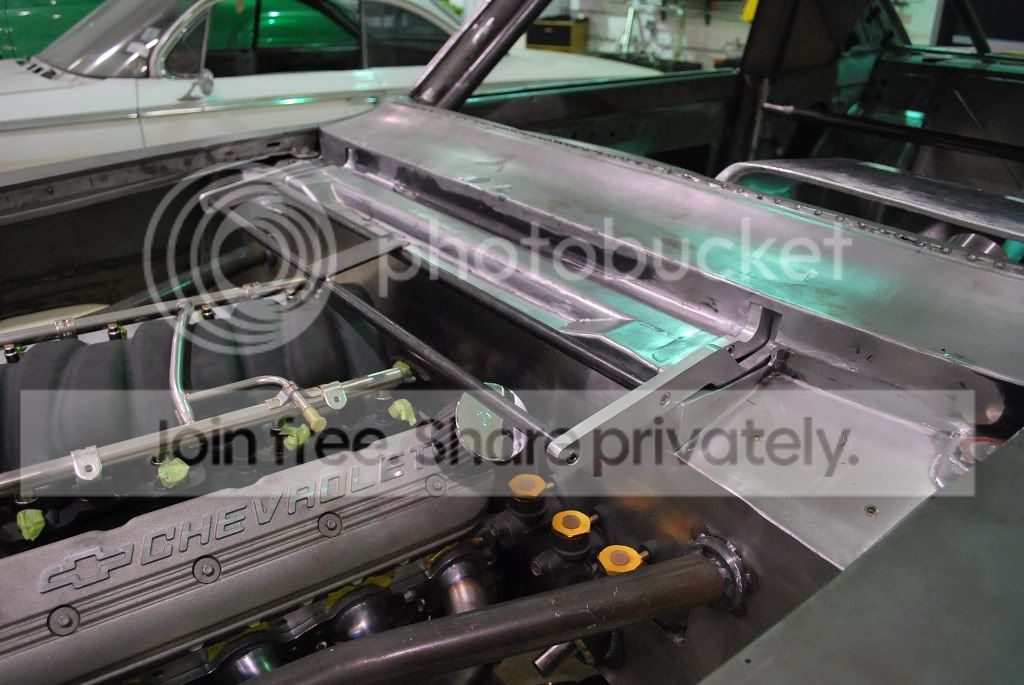 Since the air boxes are staying stationary, we needed to then fab new hood hinges since the air boxes were int he stock hood hinge location.