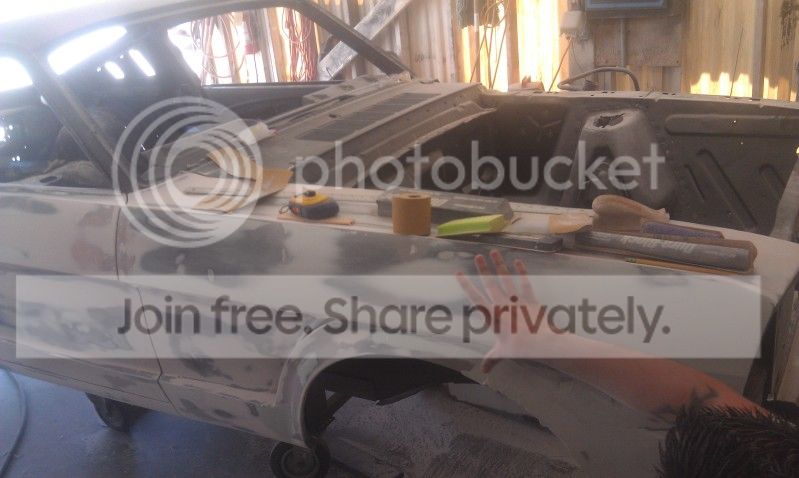 Been busy sanding filler. Since I got pretty crazy with the metal work and it looks like the car might actually turn out nice, soon I'll be handing it over to Jesus at the shop to go over the side one last time for me and fix all of the wobbles and heavy sanding scratches along the side. Then it will finally get a coat of primer, well at least one side will. I'll be busy buttoning up the other side in the mean time.