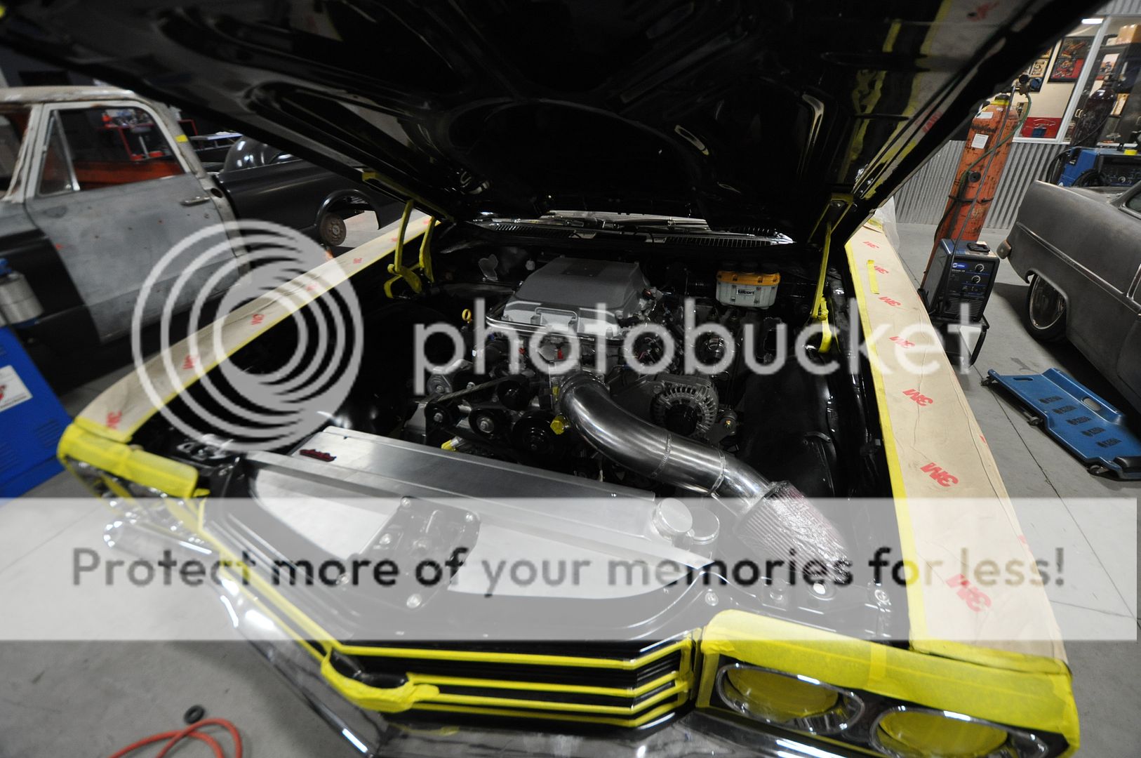 T - Minus 2.5 days until the customer flys in to drive his LS9 57 Chevrolet home to Las Vegas on Saturday and do a visual inspection on the 70 Chevelle. Back to work. |