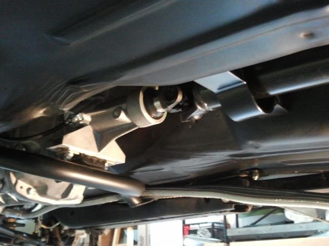 I installed the shortened driveline with the new yoke, and a home-made driveline safety loop after the trans was installed. I think it's a good idea to run a loop just in case.