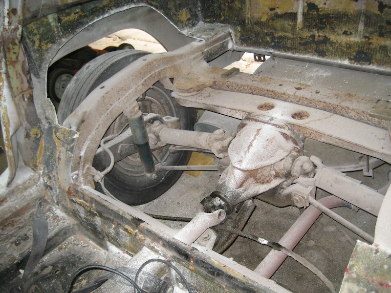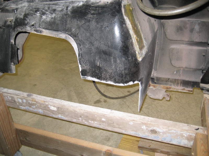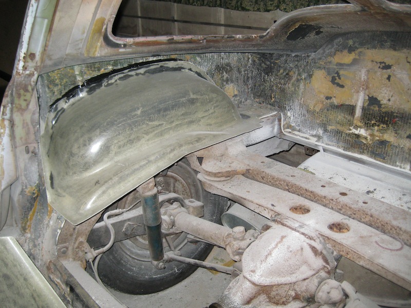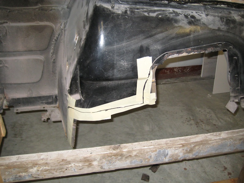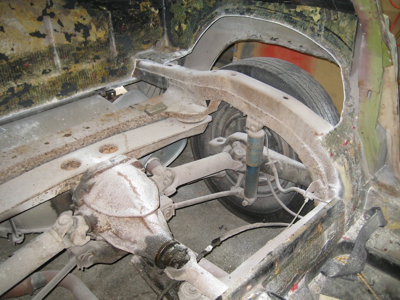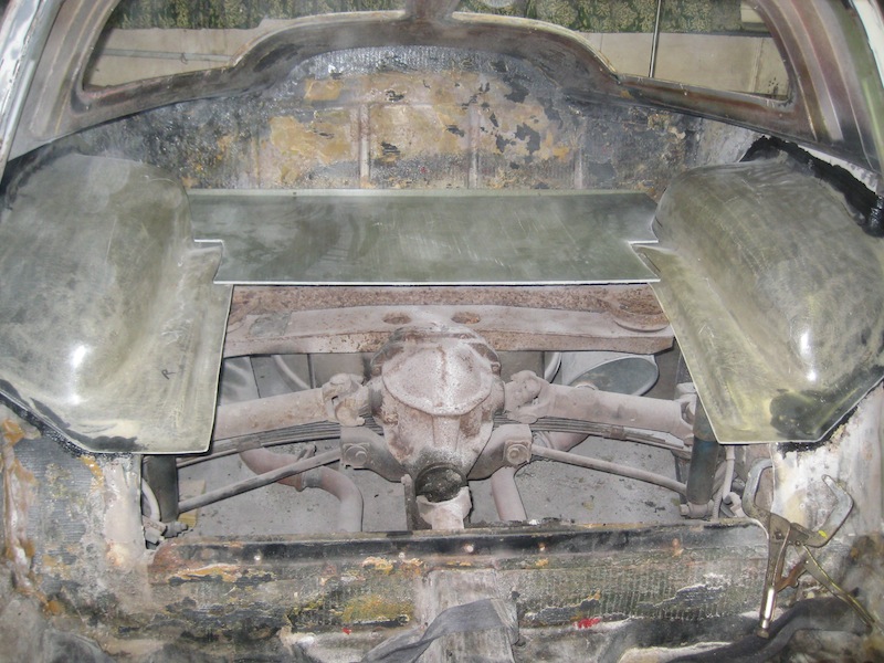 Cuts to rear floor in order to get chassis to fit to body. Wheel wells already in place