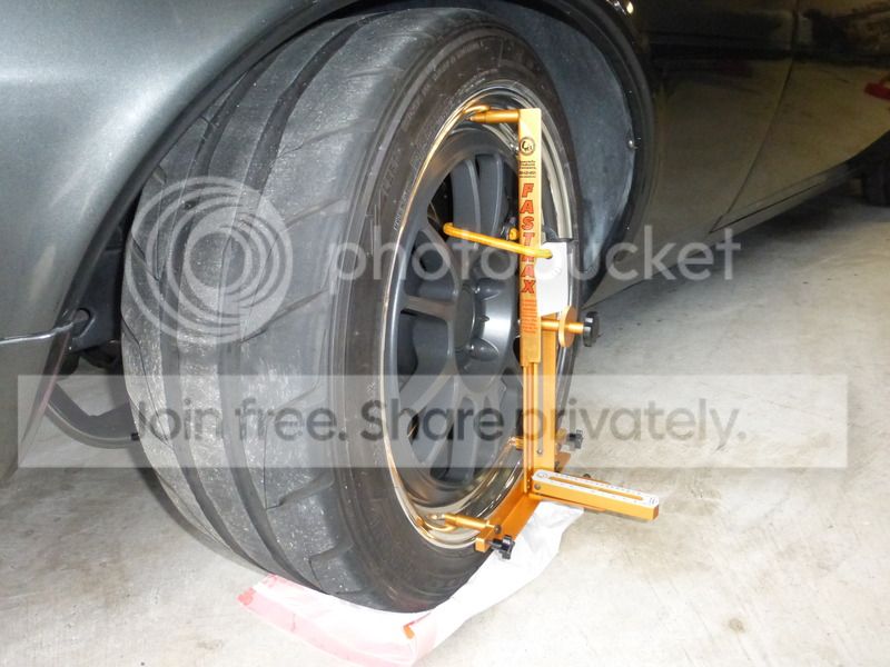 Spent about 90 minutes yesterday to go over the front end alignment. Adjusting the toe. http://i616.photobucket.com/albums/t...psy7pjkfjy.jpg Checking camber/caster. http://i616.photobucket.com/albums/t...psmvm8evsr.jpg I went with -0.5 degree camber, 0 toe, and pos 5 degrees caster. |