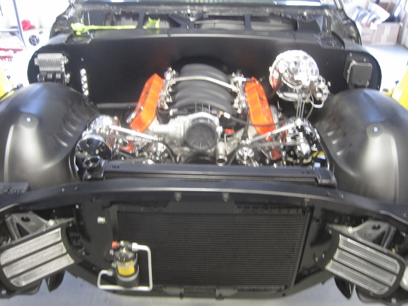 Check out the updated pics. The engine bay is super clean. Standing in front of the car you barely see hoses, wires and lines.