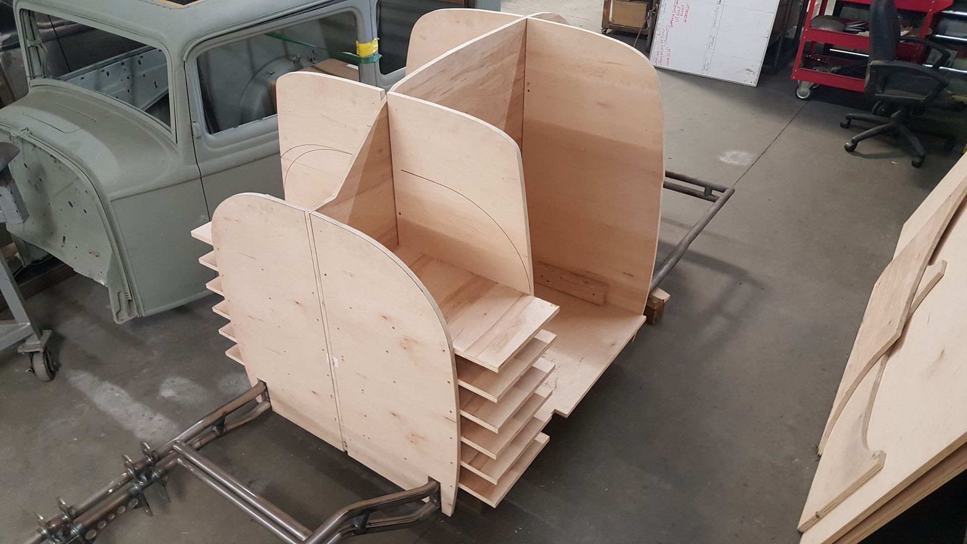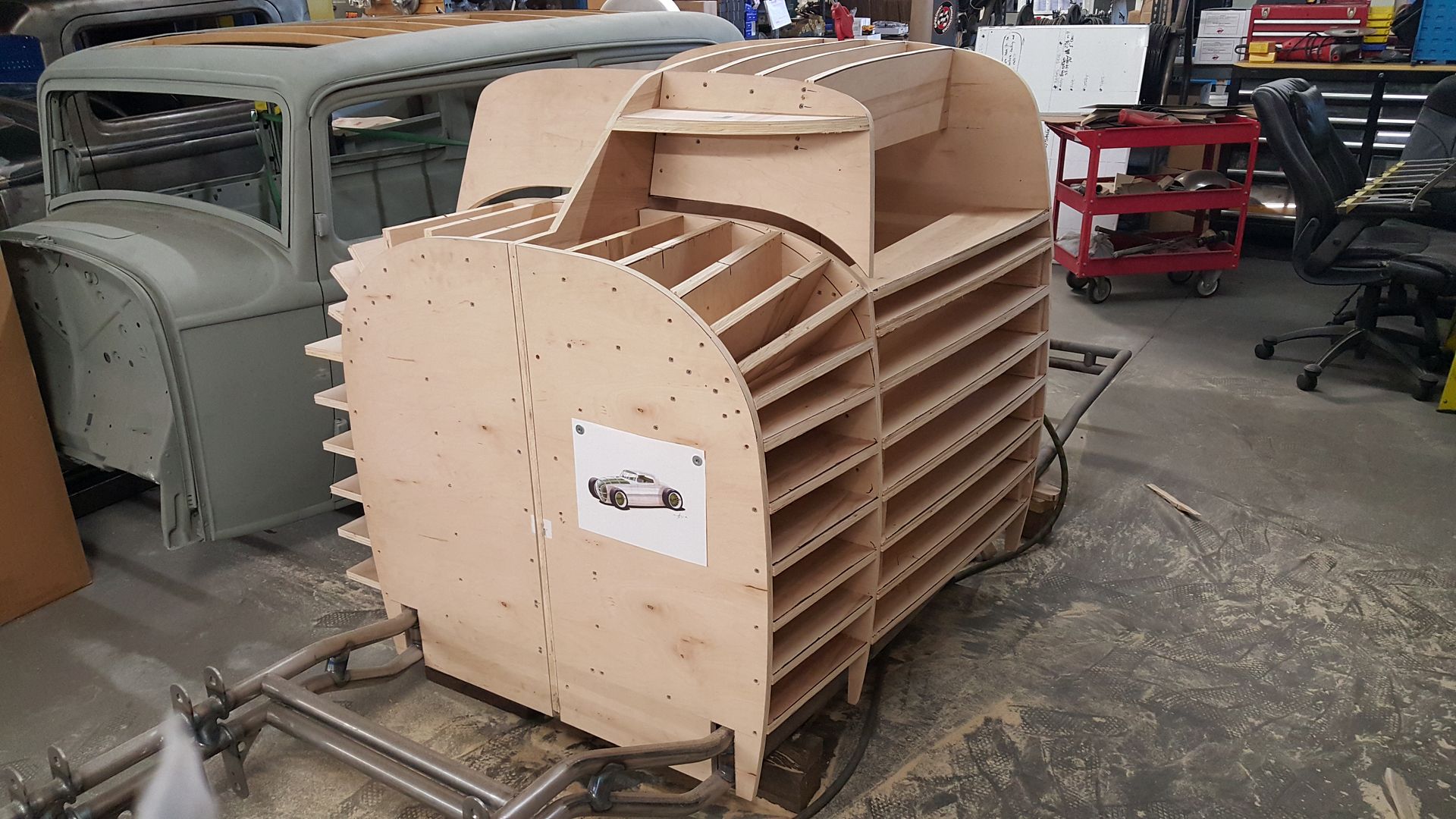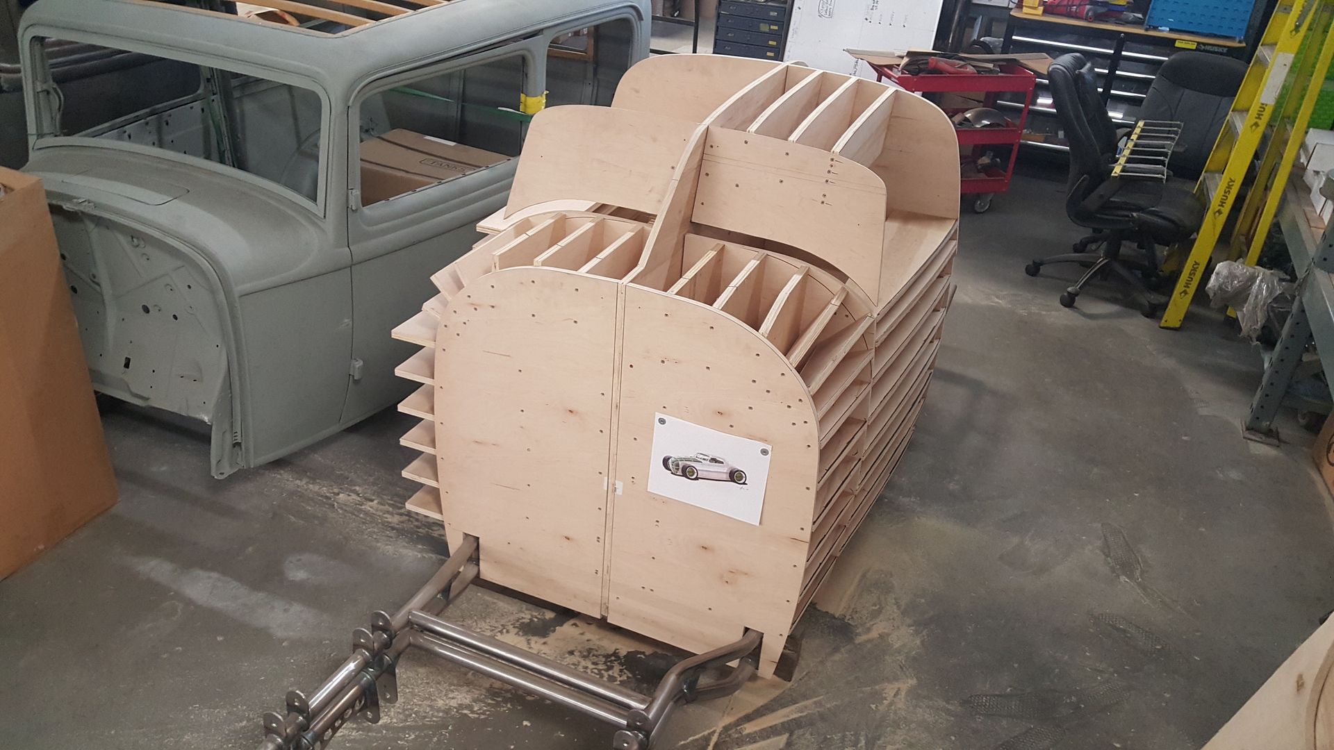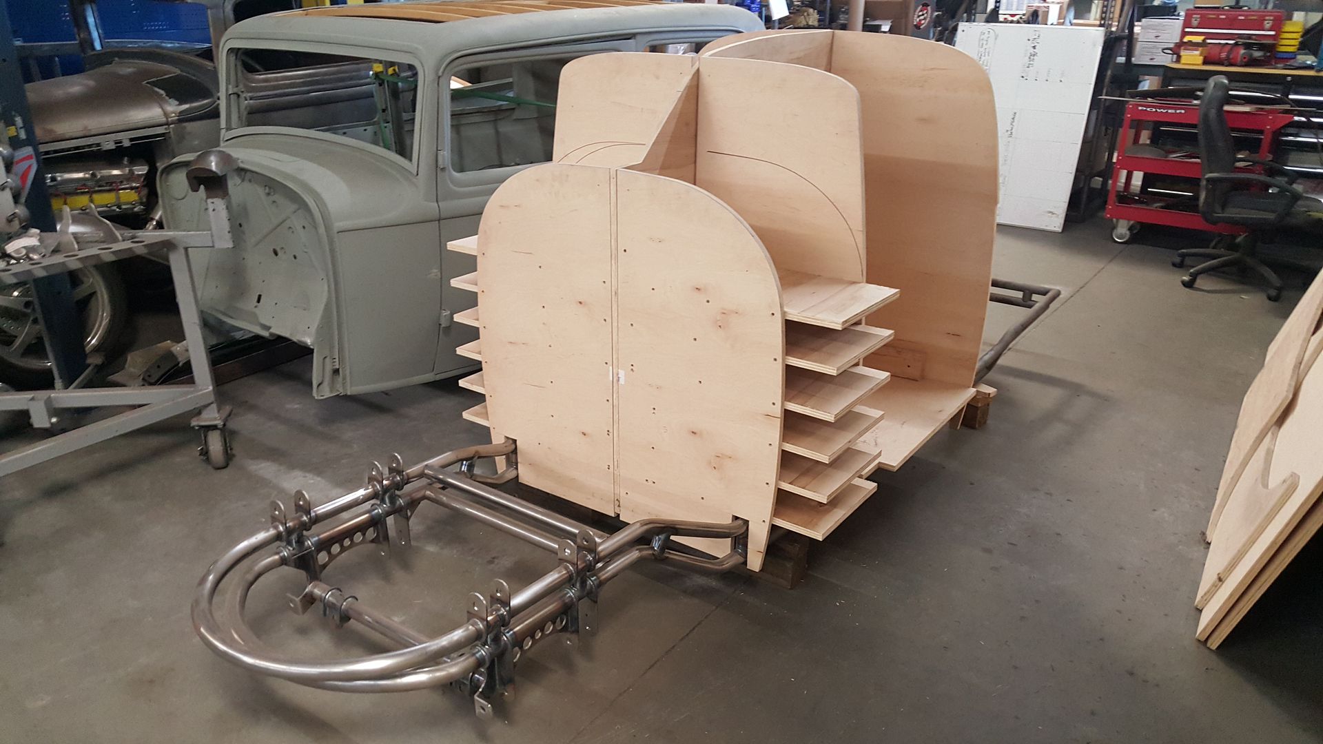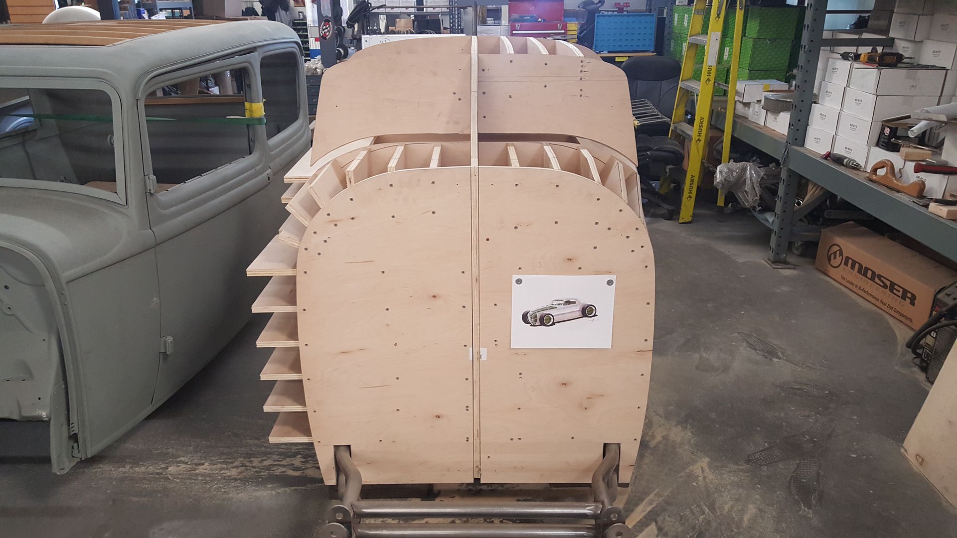 Thanks, my main goal is to nail the proportions of the B25. The car on the lift is a chopped Hillman with a small block and 31' slicks |