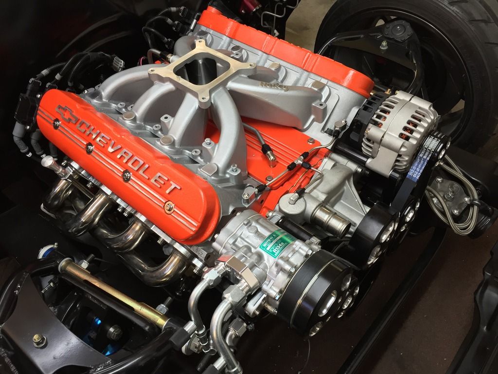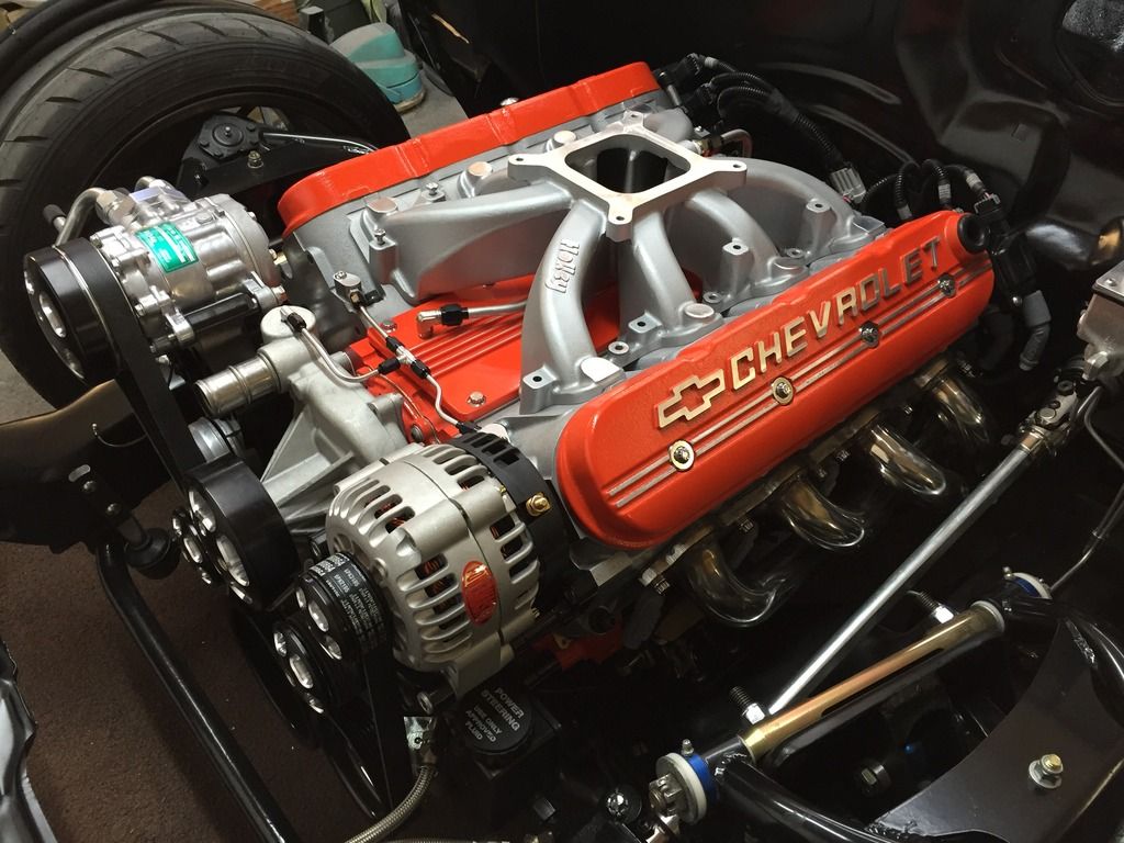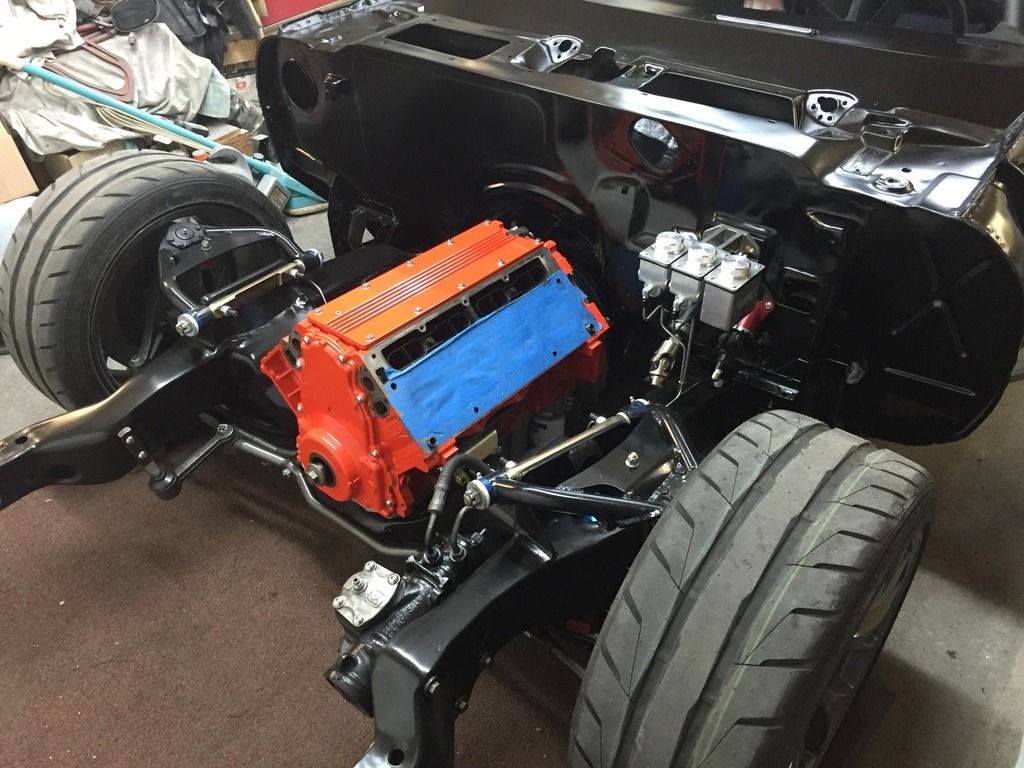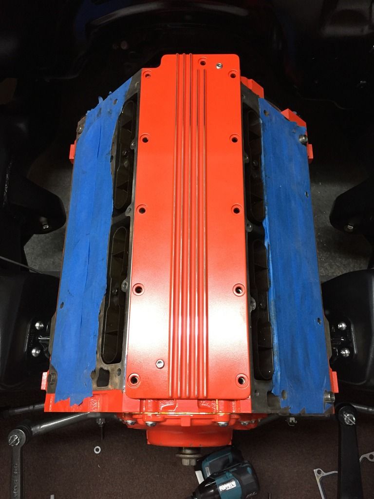Well I got the motor and transmission installed. Being that I am going carbureted I did not like the look of the stock valley cover. I really like the look of the billet specialties ribbed one but they do not make them for the ls1/ls6 style valley only for the ls2/ls3 so I had to modify it to make it work. Also I got the brake lines all bent up. I also started making the door panel cards and package tray made so I can take them to get them upholstered without having to take the car while it gets painted. Now I am just waiting on getting my cylinder heads back so I can get them torqued down and assemble the rest of the car to go to paint.