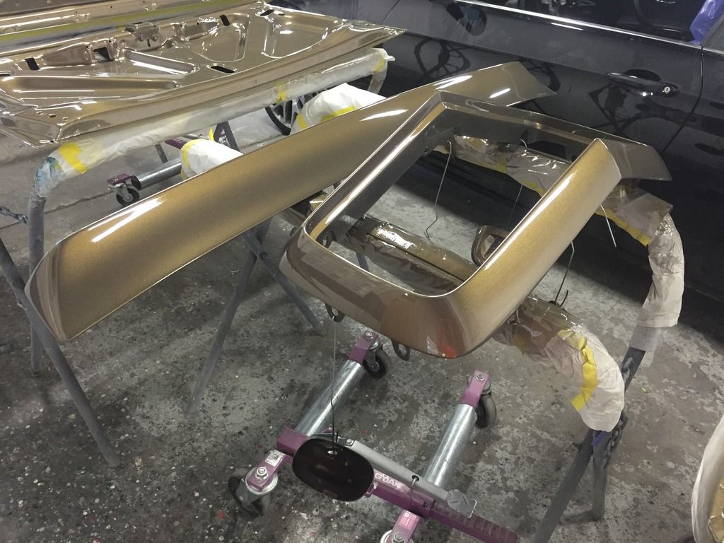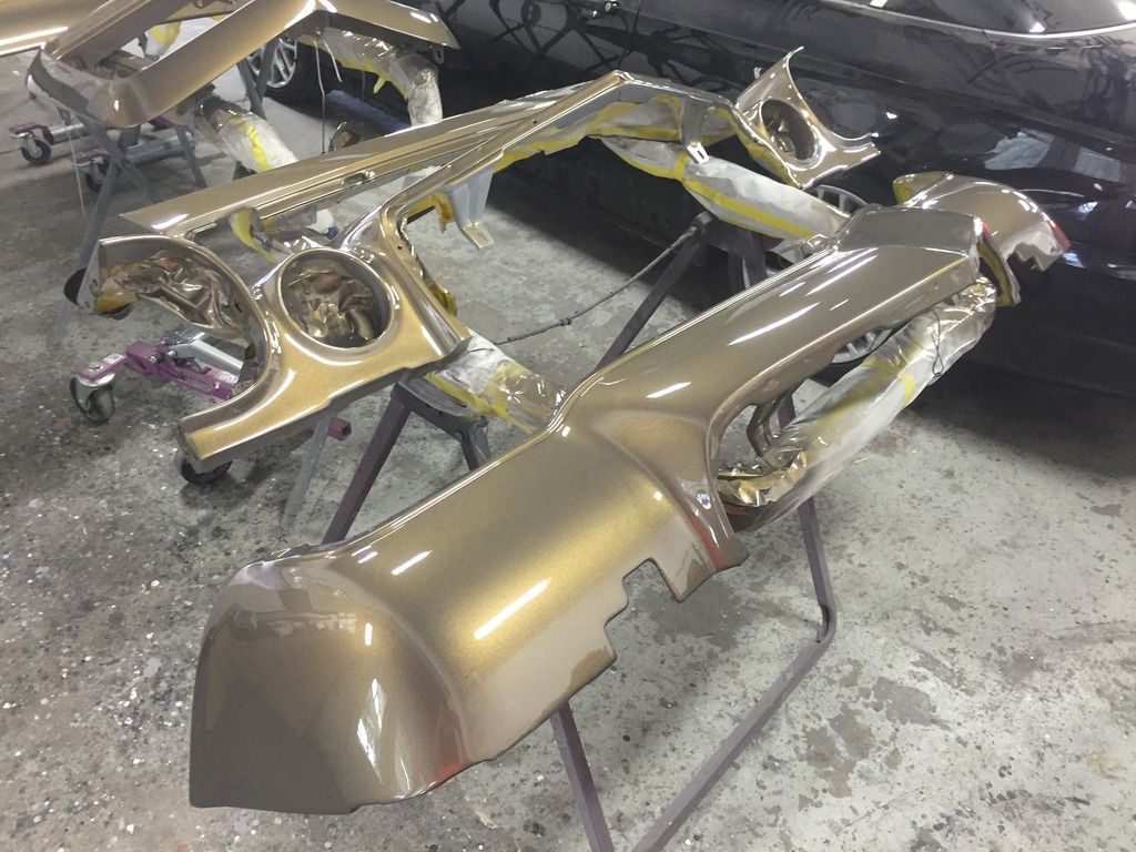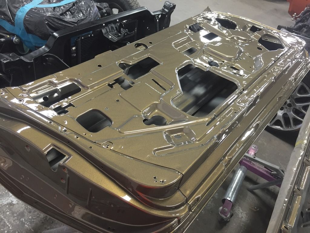 Shes got color on her and man do I love that color it changes to different colors depending on the way you look at it and what light the car is in. Car should get color on it tomorrow morning then the hood and fenders should get it there after. Can't wait to get this thing back and get it assembled.