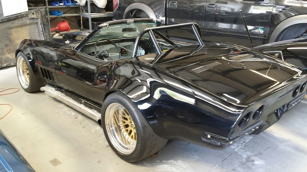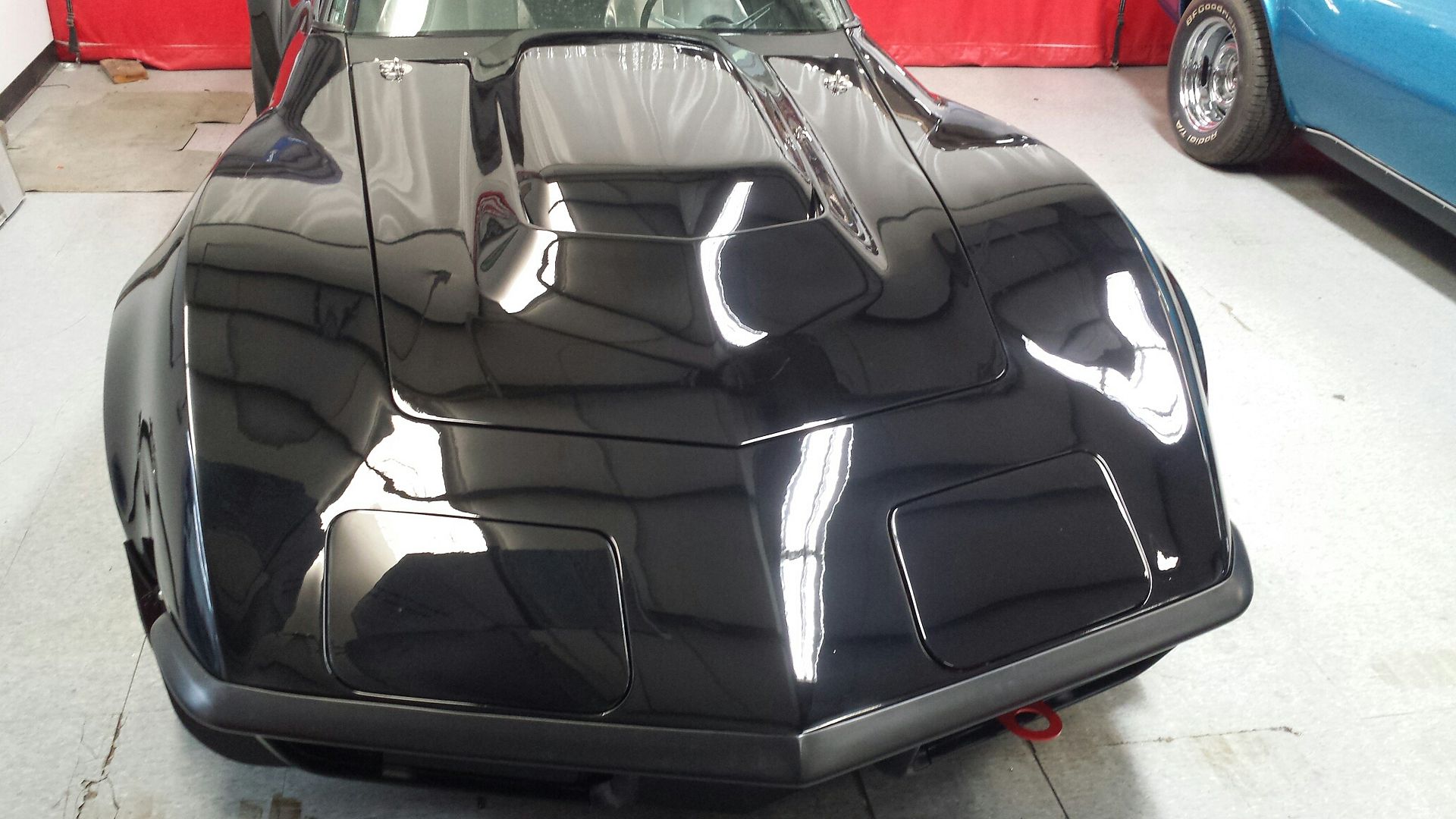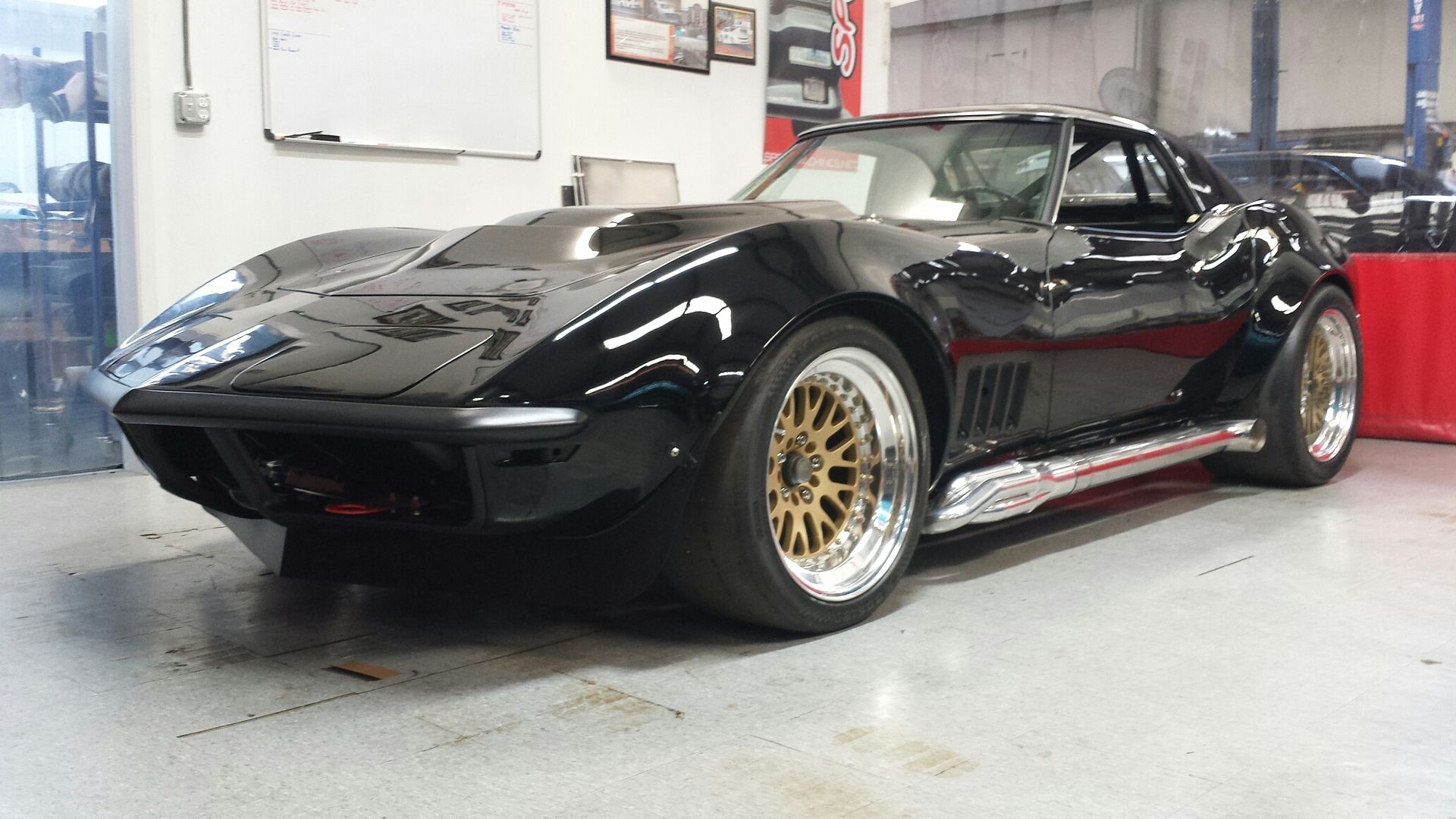 After lots of debate, I decided not to start with the full race livery on the car. We ended up doing a subtle Owens-Corning L88 style stripe which integrates well with the satin black and powder-coated parts of the car.