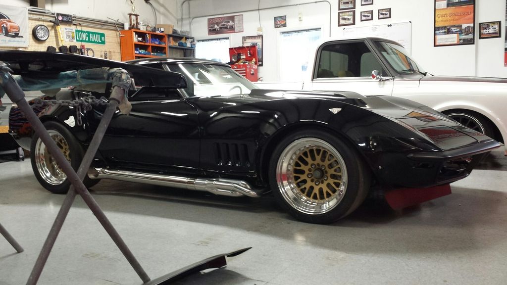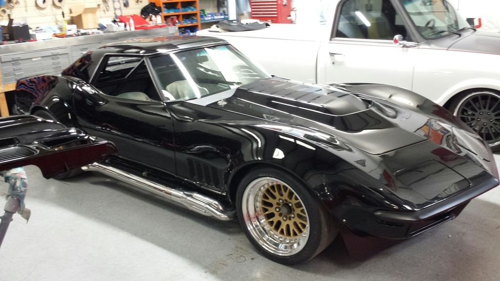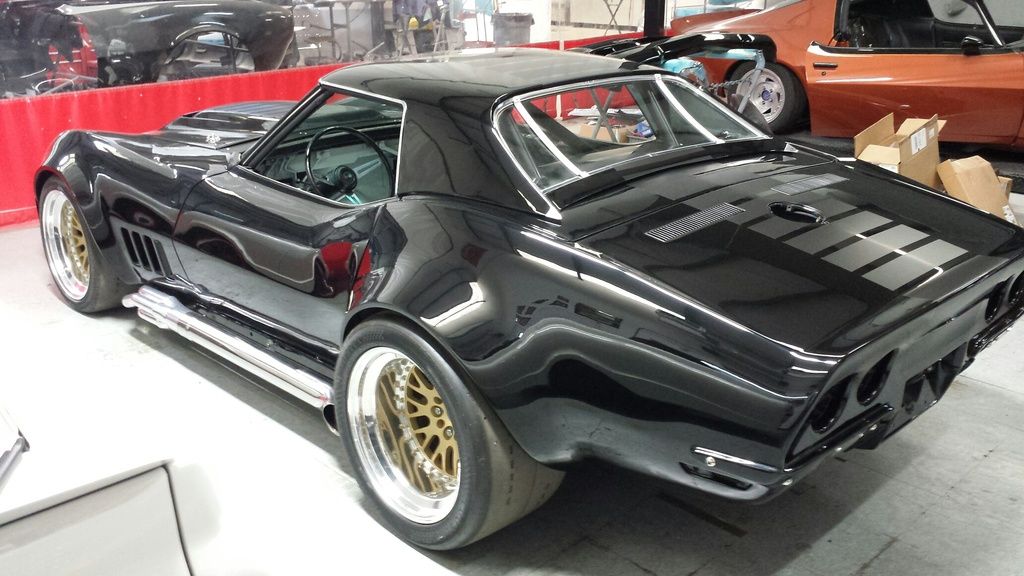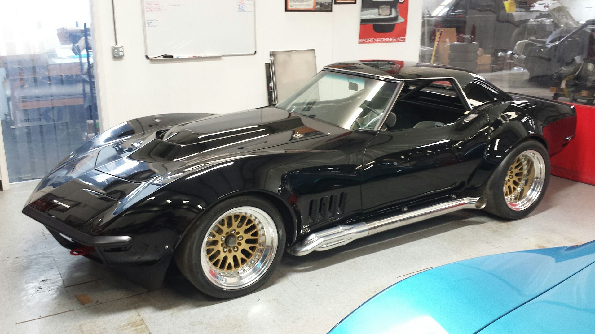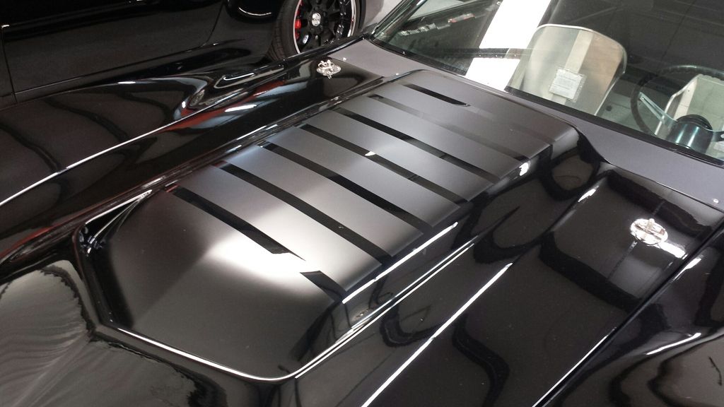 After lots of debate, I decided not to start with the full race livery on the car. We ended up doing a subtle Owens-Corning L88 style stripe which integrates well with the satin black and powder-coated parts of the car.