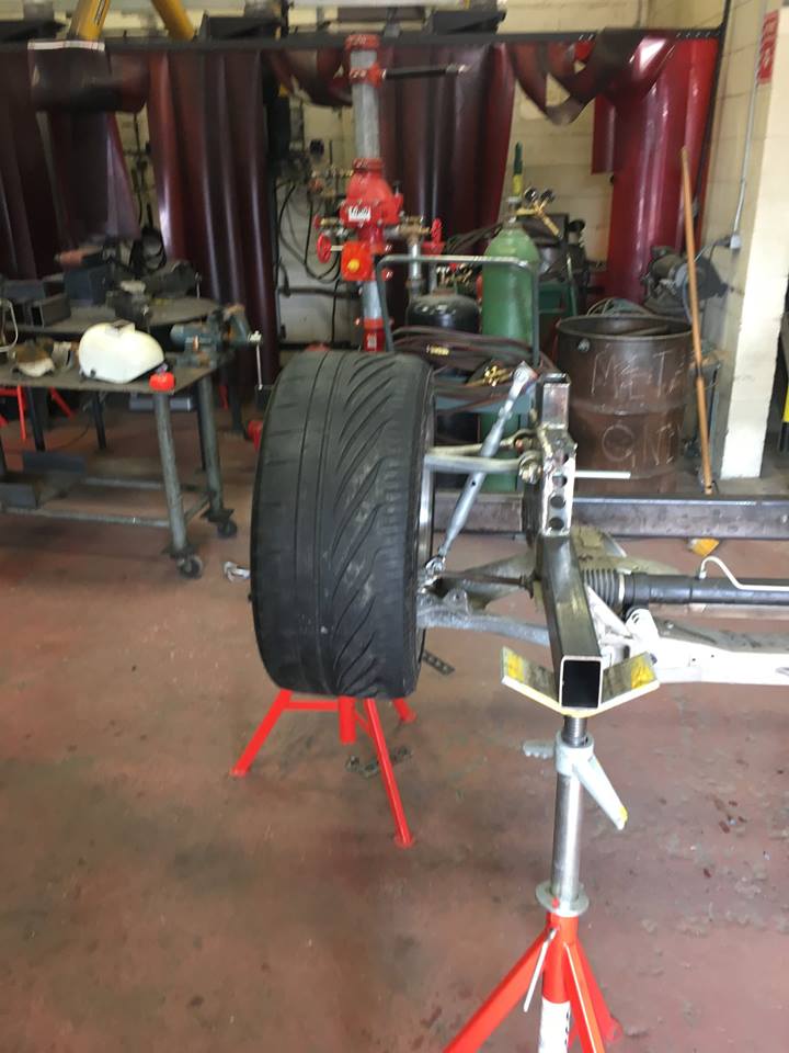 After a little racing break we needed to get back at the front end. That measurement of 71-1/2 is 2 inches wider than the stock rear-end width. I had planned for the front to be slightly wider than the rear so I could mildly IMSA the front fenders for heat release. Of course I maybe can’t leave that alone and maybe I will see if I can run 325s on the front also?