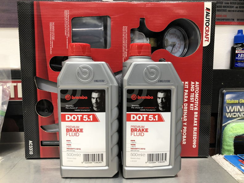 On Sept 30 I decided to bleed the rear brakes and since I was doing it alone I went out and bought another one man bleeder kit (I have one somewhere) so I could get it over with. I also picked up some Brembo Dot 5.1 Brake fluid which is what I use in my yellow Camaro. http://garagescene.net/_data/i/uploa...ce1d148-me.jpg First thing first need to get the kinks out of the supplied hose. http://garagescene.net/_data/i/uploa...ee408e3-me.jpg all better http://garagescene.net/_data/i/uploa...a4c88bc-me.jpg Did I tell you all how much I love this DSE Brake Booster set up. http://garagescene.net/_data/i/uploa...38020b6-me.jpg all done. http://garagescene.net/_data/i/uploa...f23537d-me.jpg Very nice kit and much better then the 10 year old one I have somewhere in my garage attic. Maybe when I clean it out next summer I will find it and donate it to someone else. http://garagescene.net/_data/i/uploa...0bf2bf0-me.jpg |