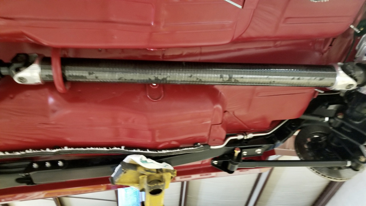 Dynamic Drivelines 3" Carbon Fiber driveshaft which made for a tight fit on exhaust clearance at full droop.