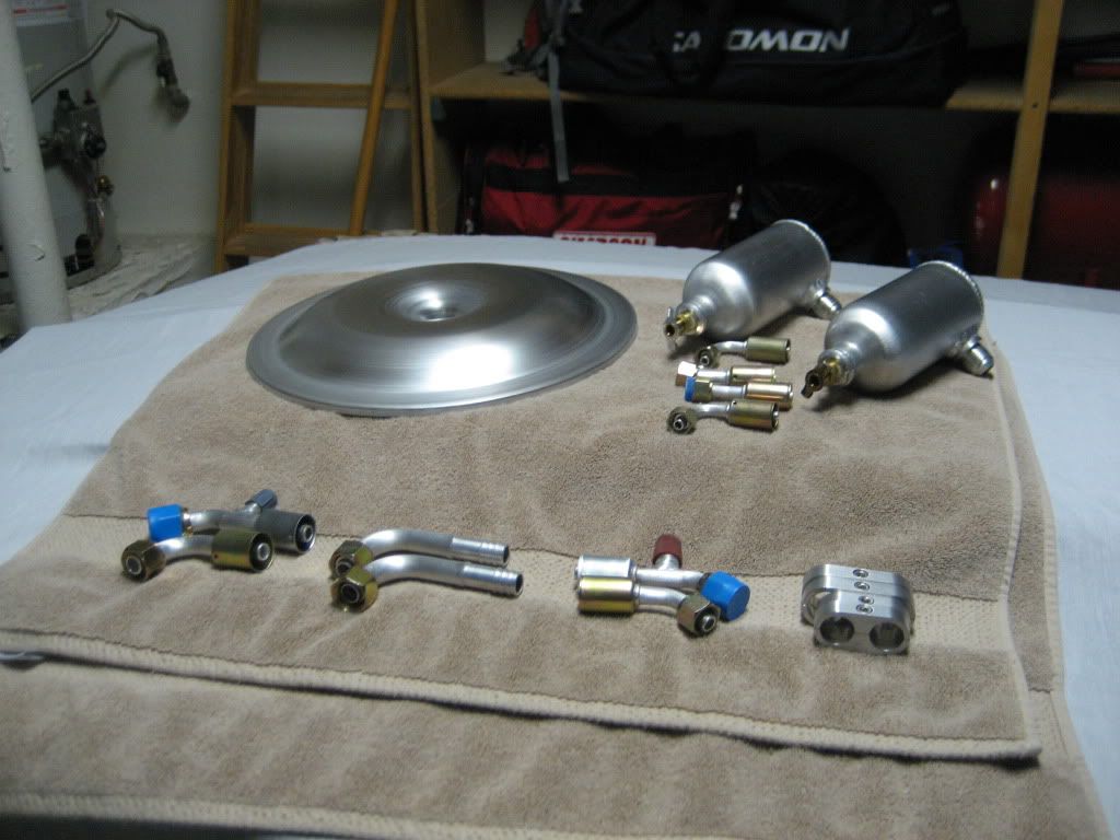I didn't do much this weekend. I need an engine. Looks very likely for this coming week. :thumbsup: However I went off the deep end on the brushing. All AC/Heat fittings, air cleaner lid, hose seperators, and both breather catch cans. All sealed and ready to go.