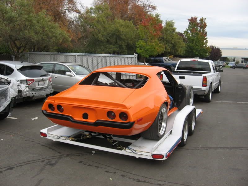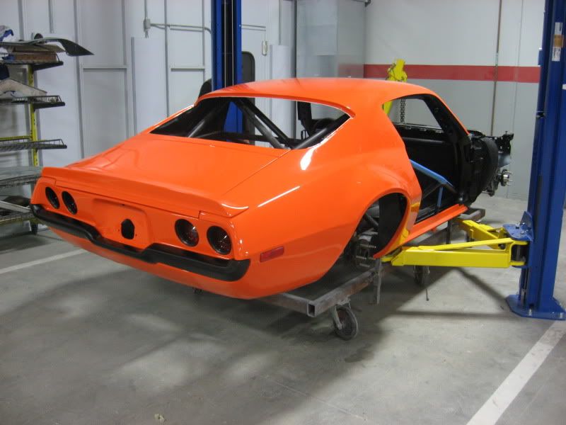 Everything is painted but the nose piece, and that will be done soon. We took the car home today to install the engine and transmission. Once that is in, the Camaro will come back to the body shop to install the nose. Here are a few photos. More to come. Removing the car from the jig. It has been on there for about 3 years! http://i80.photobucket.com/albums/j1...b/IMG_3598.jpg Going home! http://i80.photobucket.com/albums/j1...b/IMG_3600.jpg |